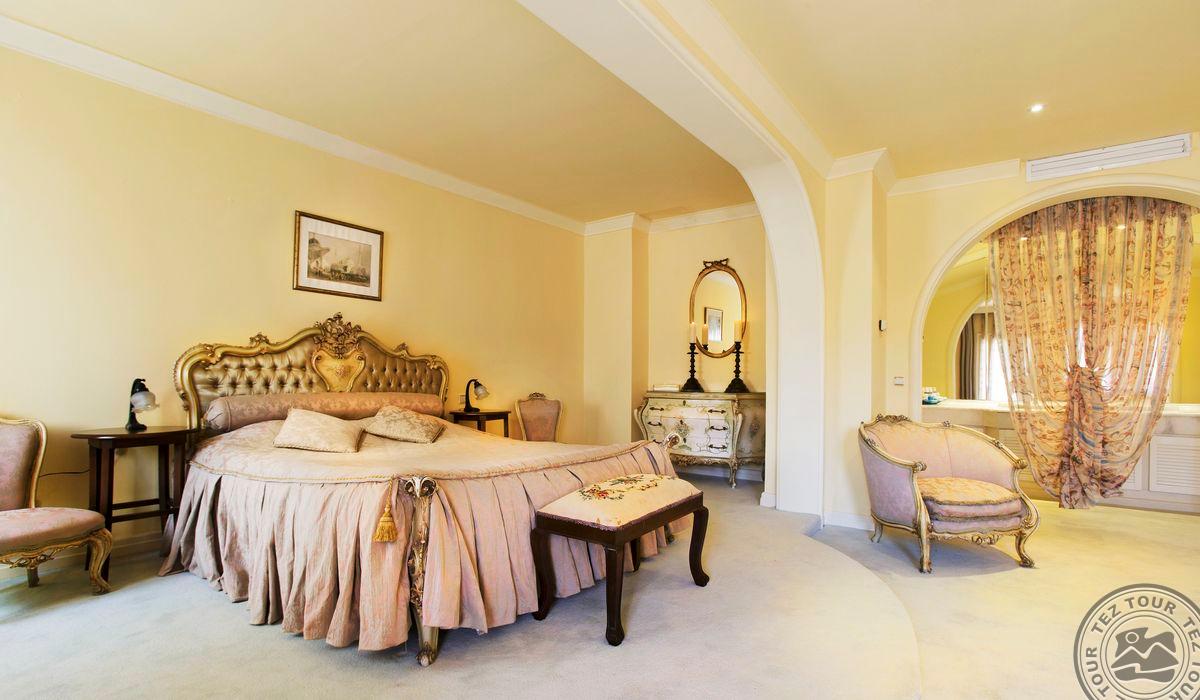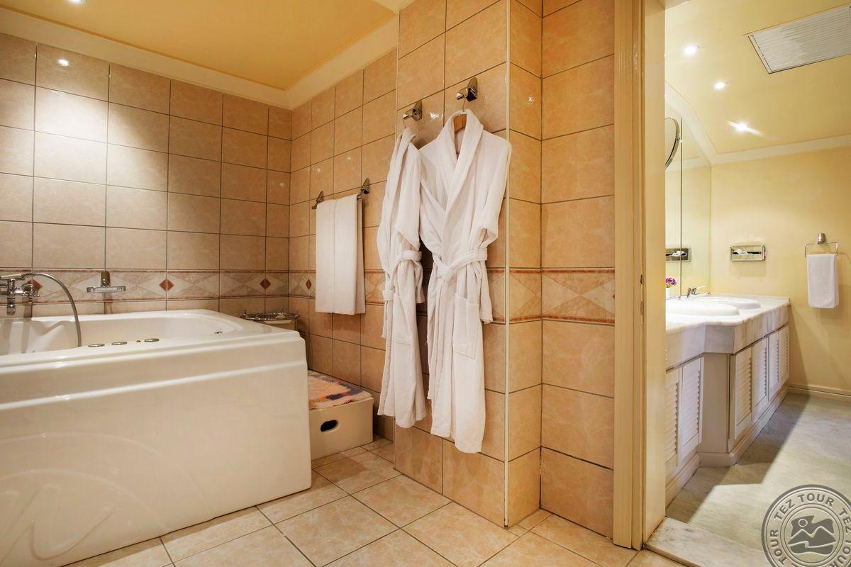 1 dviejų kambarių Premium Honeymoon suite tipo numeris (2 kambarių numeris: svetainė su virtuve, miegamasis atskirtas durimis, vonios kambarys su sūkurine vonia, drabužinė, maks. 2 asm., 180 kv.m, VIP-servisas);
