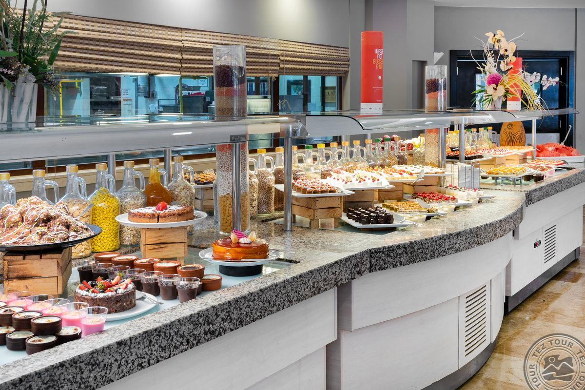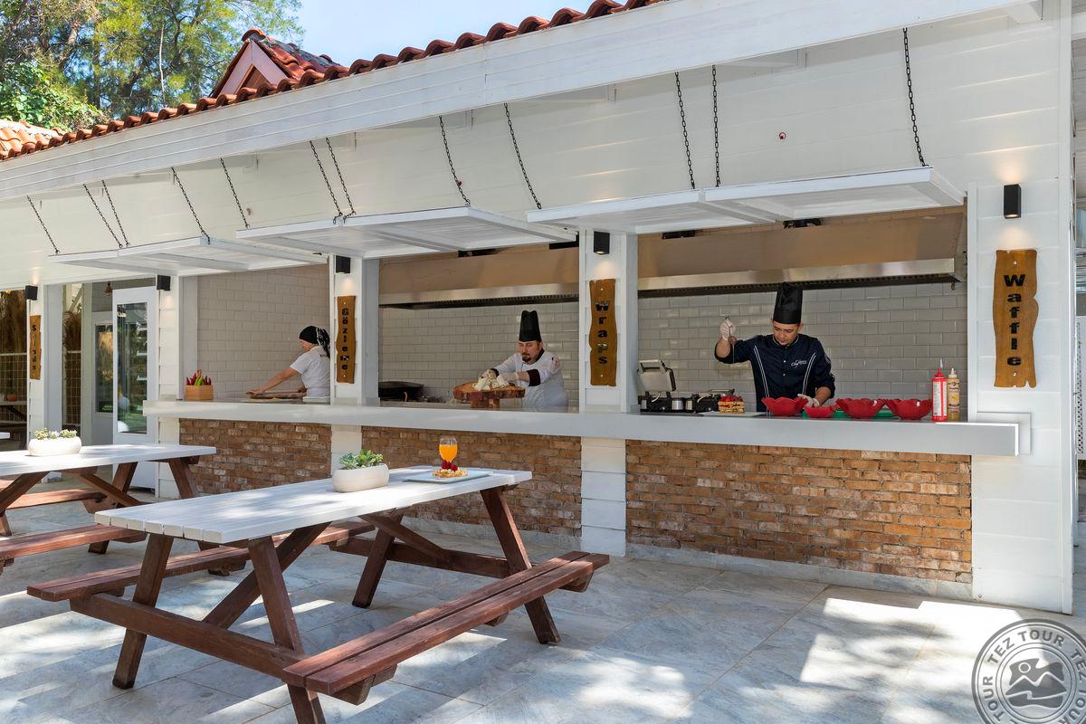 • a la carte restoranai: 5 (Anatolija (turkiškas), Casa Mexicana (meksikietiškas), Baharat Bazaar (azijietiškas) – nemokamai; Club Phaselis (Viduržemio jūros regiono virtuvė, 19:00-21:30), Steak House – už papildomą mokestį)