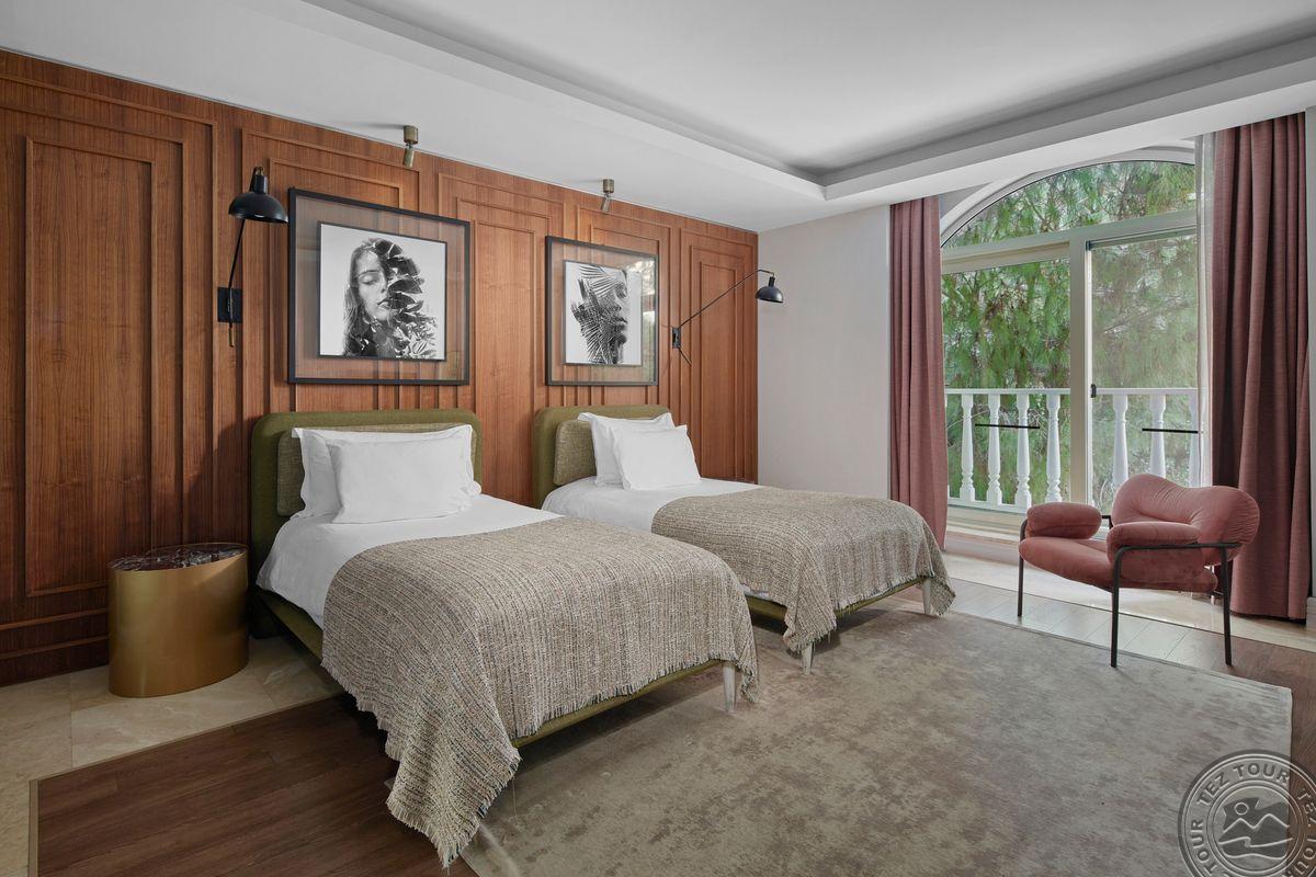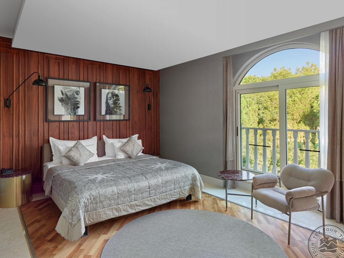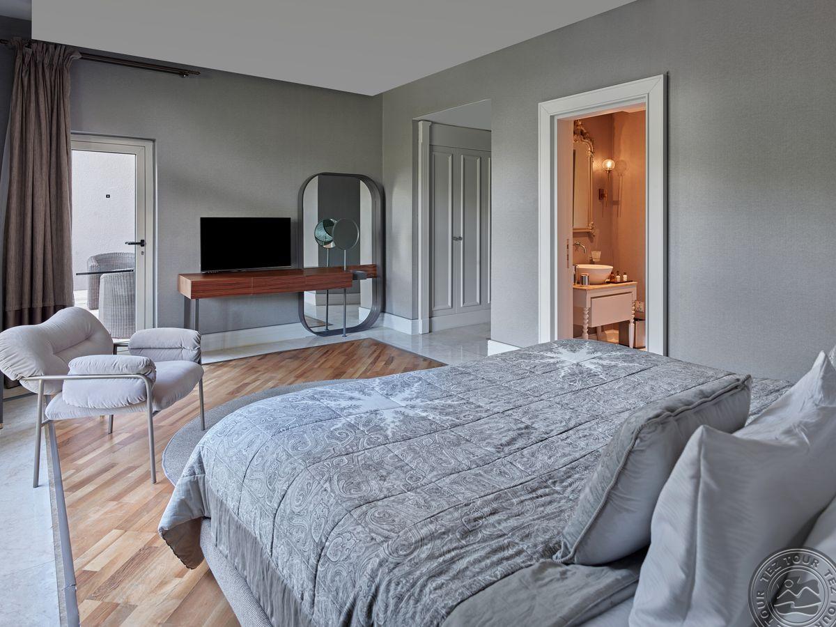274 vieno kambario suite tipo numeriai (su vaizdu į jūrą arba sodą, miegamasis, dušas, vonios kambarys su sūkurine vonia, maks. 3 asm. + 1 vaikas + 1 kūdikis, 80 m2).