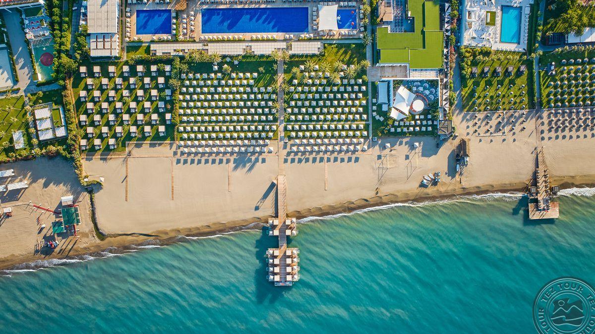 Apie 35 iki oro uosto, apie 45 km iki Antalijos miesto centro, apie 1 km iki Beleko, ant jūros kranto.