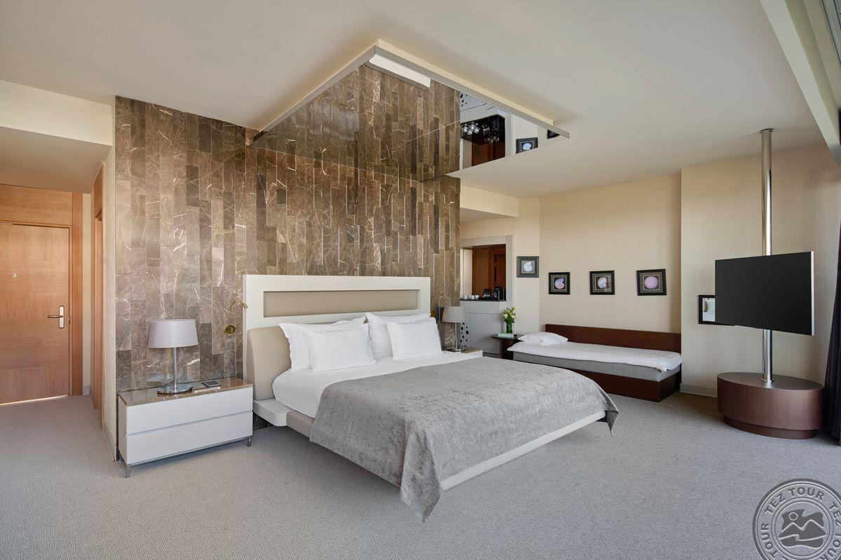 80 dviejų kambarių  terrace family suite tipo numerių (2 miegamieji atskirti durimis, 2 vonios kambariai su dušu, 2 balkonai, sūkurinė vonia viename balkone, maks. 4+1 asm. + kūdikis, 100 m2).