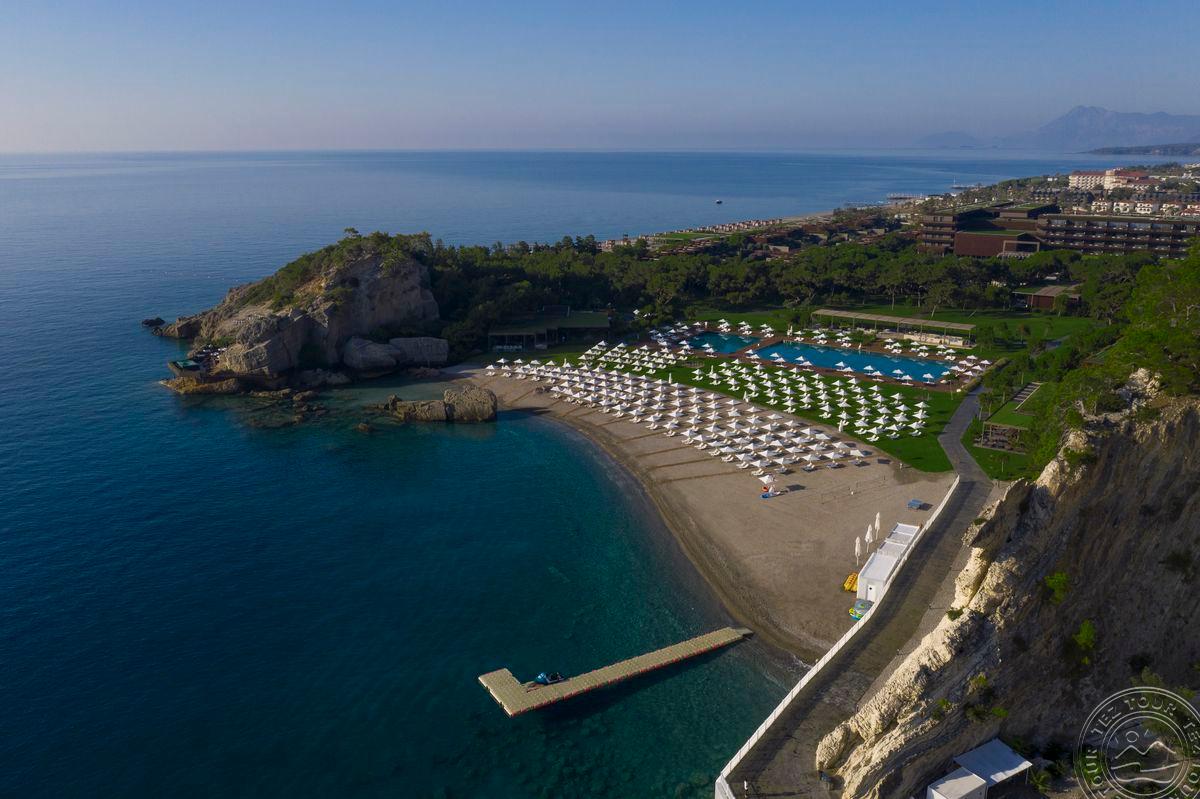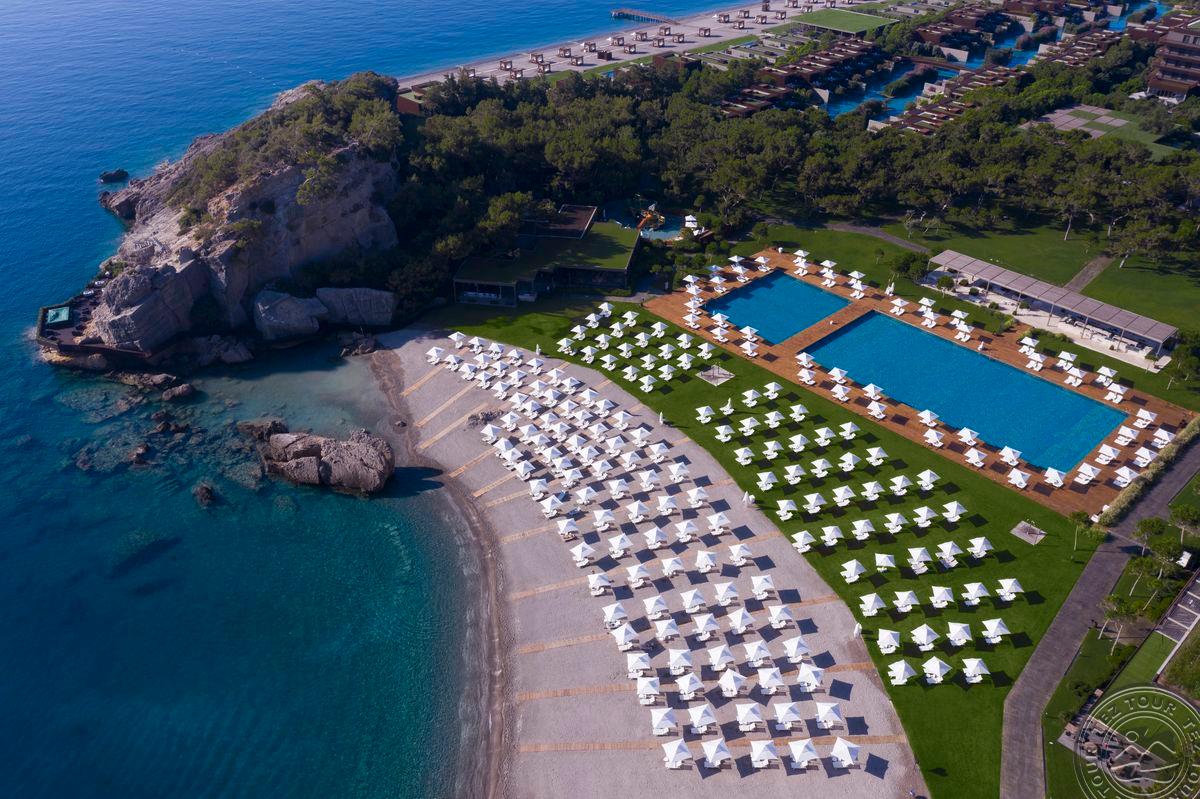 Vienareikšmiškai geriausias Turkijos viešbutis. Jauki, prabangi atmosfera. Didelė, nuostabaus grožio teritorija. Labai ramu. Yra asistentai Pagrindinis restoranas dirba visą parą. Yra restoranas su „Michelin“ žvaigždutės šefu, sušių restoranas (stengiamasi išlaikyti aukštą lygį). Viešbučio svečiams, gyvenantiems aukštesnės kategorijos tipo numeriuose, siūlomas VIP aptarnavimas. Mini klubas dirba iki 2 am. Vandens sportas, laipiojimas uolomis šalia jūros. Nemokama teniso aikštelė su įranga. Yra sraigtasparnių nusileidimo aikštelė.