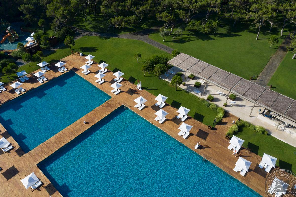 Vienas geriausių Turkijos viešbučiu. Modernus ir minimalistinis dižainas. Puikus pasirinkimas ramiam ir prabangiam šeimų ir porų poilsiui. Didelia, išpuoselėta ir žalia teritorija. Yra keletas paplūdimių, vienas ramusis laukinis paplūdimys ir kitas platus žvyro paplūdimys. Taip pat čia dirba visą parą restoranas. Vaikams yra naujas vaikų klubas, kur galima vaikus palikti iki 2val. Nakties, vandens parkas, bet čia mažesni vaikai gali būti tik su tėvais ir išskirtinės pramogs kaip alpinistų pamokėlės. Toliau nuo viešbučio yra estrada ir klubas, kad nebūtų viešbučio svečiams triukšmo. Nerialus ir išskirtinis viešbutis, su nuostabiais gamtos vaizdais. Draugiškas ir paslaugus personalas.
