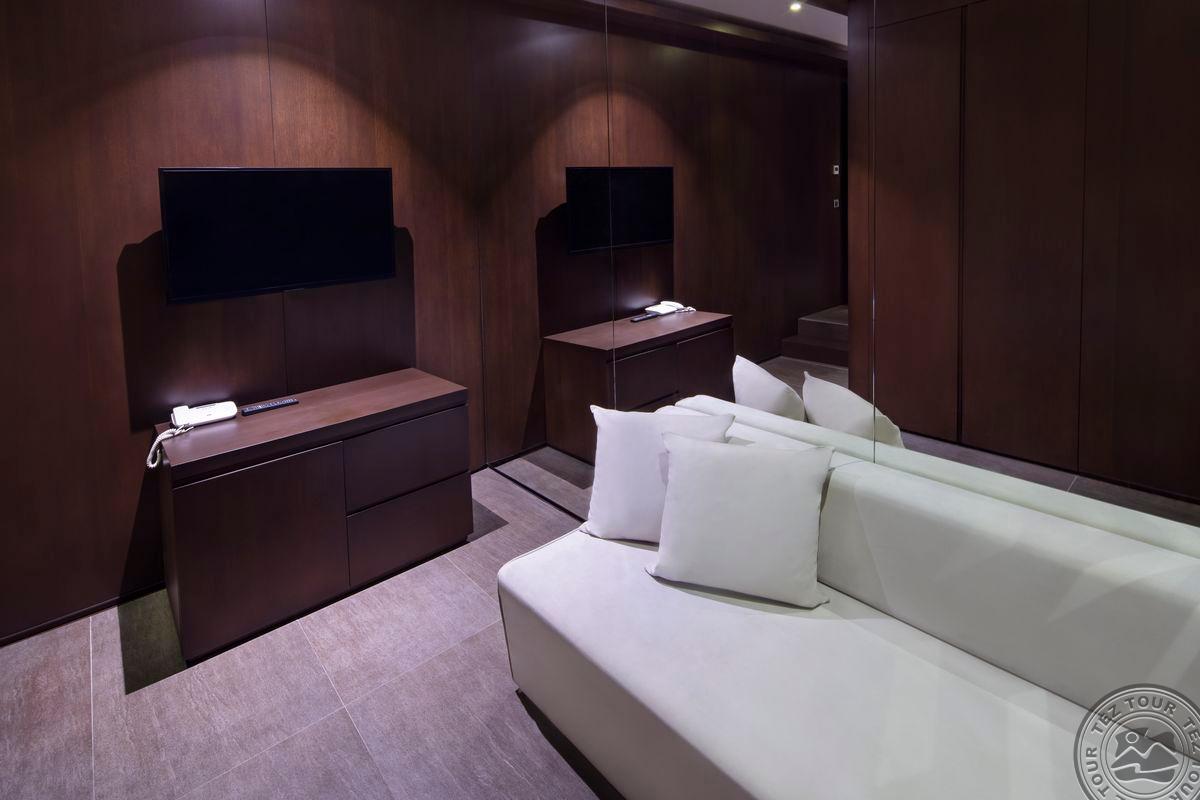 133  vieno kambario suite tipo numeriai (miegamojo zona, svetainės zona, vonios kambarys su sūkurine vonia ir dušu, drabužinė, maks. 3 asm., 100 m2