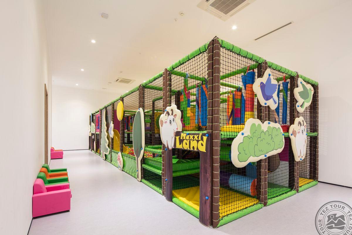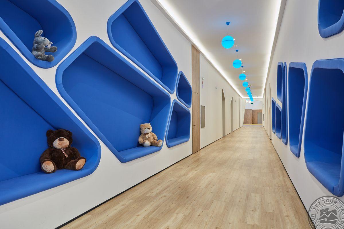 Vaikams iki 12 metų: vaikiški vonios reikmenys, vaikiški mėlyni arba rožiniai chalatai, vaikiškos šlepetės, kūdikių vonelė, maitinimo kėdutė, mobili auklė, pienas maksi bare, šokoladinis pienas maksi bare, vaikų animaciniai televizijos kanalai.
