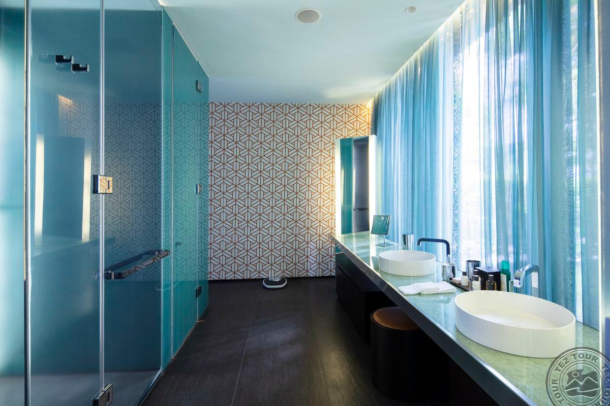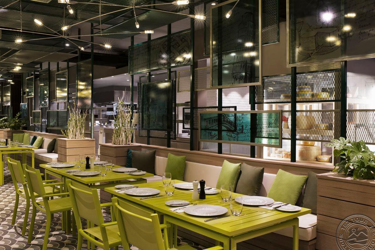Viešbučio teritorija kalnuota, apželdinta ir netgi kalnuose galima pamatyti ožkelių. Atvykus į viešbutį jauties kaip įejės į spa – daug erdvės, nieko neapkrauta. Yra 291 kambarys trijų kategorijų, visi kambariai su asistentais. Lobyje veikia baras visą parą, taip pat yra parduotuvės. SPA yra nemokamai, tačiau procedūros – mokamos. Viešbutyje 10 restoranų (5 įskaičiuoti, 5 mokami), visi veikia à la carte principu. Mokami restoranai – vienas 35 € asmeniui, o „Michelin“ restoranas – 65 € asmeniui. Yra vaikų klubas, dirbantis iki 2 nakties, ir mini akvaparkas. Didžiausias akvaparkas turi 7 čiuožyklas, o visiems svečiams įskaičiuotas „fast track“ praleidimas. Standartiniuose kambariuose yra maža vonia ir mini kavos aparatas. Lauke esantys baseinai nėra šildomi, tačiau yra šildomas baseinas viduje. Viešbutyje taip pat yra naktinis klubas, esantis už akmenų lauko.