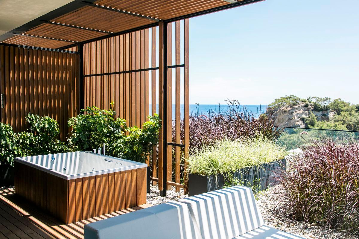 11 Royal beach villa 3 bedrooms tipo vilų (su vaizdu į jūrą, privatus baseinas ir terasa su sūkurine vonia, svetainė su amerikietiško tipo virtuve, 3 miegamieji atskirti durimis, 3 vonios kambariai su dušu, sauna, pirtis, su tiesioginiu išėjimu iš sodo į paplūdimį su išskirtine pavėsine, maks. 10 asm.+ 1 kūdikis, 250 m2, skalbimo mašina, už vilos prikabinta pavėsinė ir t.t.).
