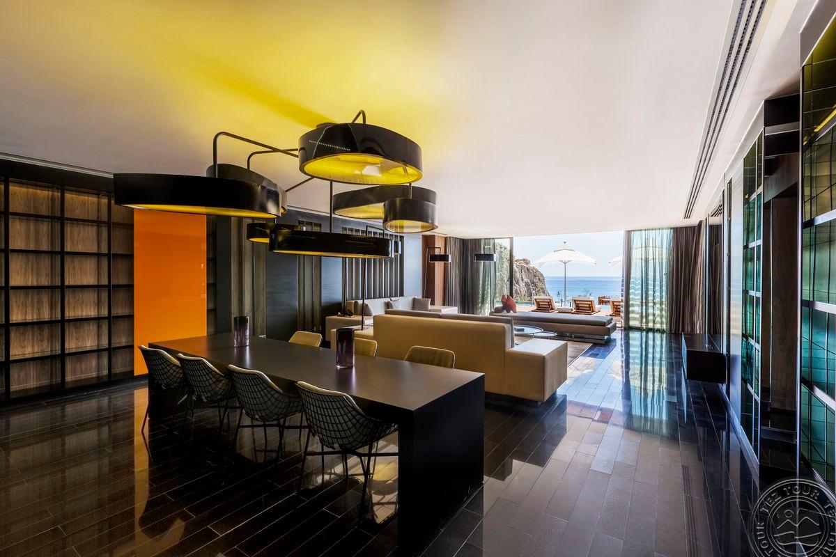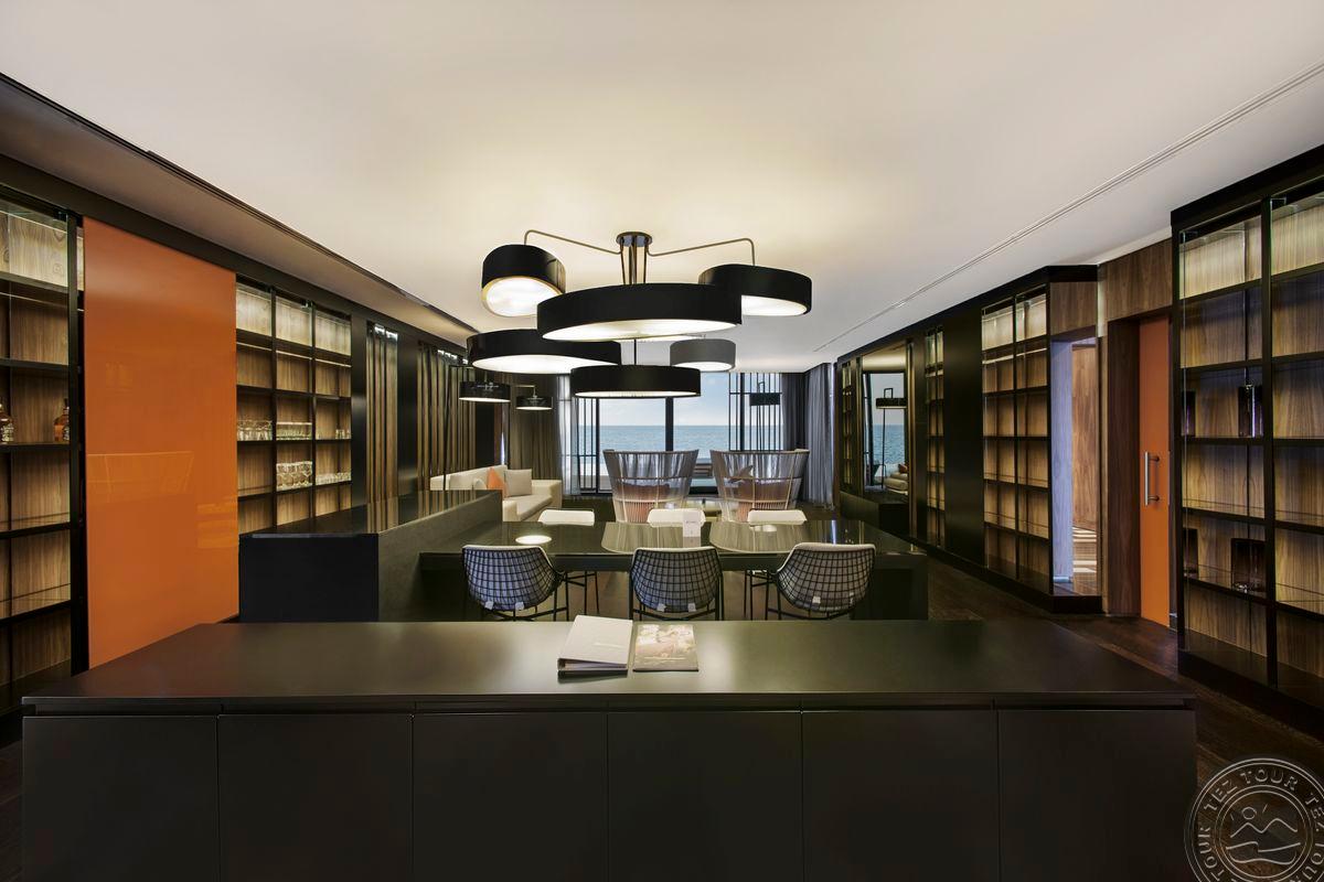 1 dviejų aukštų Presidential villa 5 bedrooms tipo vila (su vaizdu į jūrą, privatus baseinas, sodas, terasa su sūkurine vonia, svetainė, virtuvė, 4 atskiri miegamieji, 1 kambarys gali būti naudojamas kaip ofisas ar svečių kambarys, pagrindinis miegamasis su sūkurine vonia ir dušu, sauna, pirtis, turkiška pirtis, uždaras baseinas, fitneso kambarys, su tiesioginiu išėjimu iš sodo į paplūdimį su išskirtine pavėsine, maks. 14 asm. + 1 kūdikis, 450 m2, skalbimo ir indų plovimo mašinos, šaldytuvas, už vilos prikabinta pavėsinė ir t.t.).