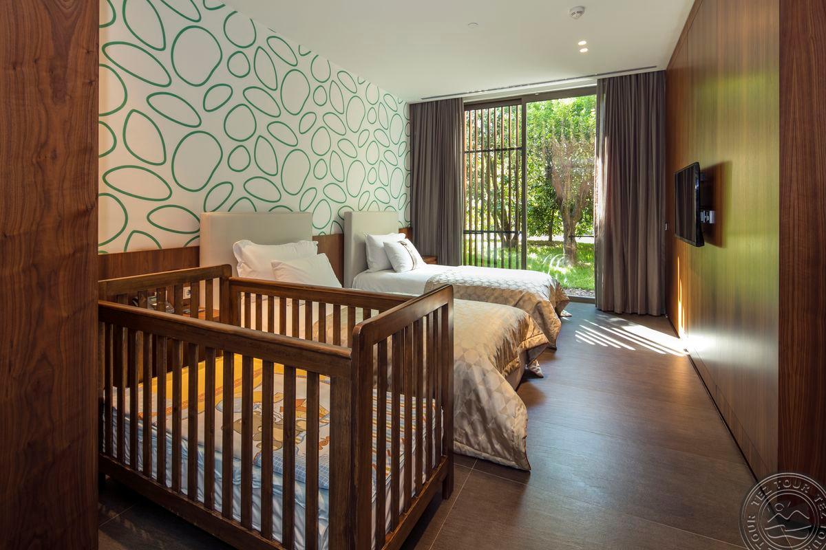 84 trijų kambarių Royal Residence Family Suite Sea View/ Garden View tipo numeriai (svetainė, 2 miegamieji atskirti durimis, 2 vonios kambariai su dušu, terasa su sūkurine vonia, drabužinė, maks.  6 asm. + 1 kūdikis, 185 m2).