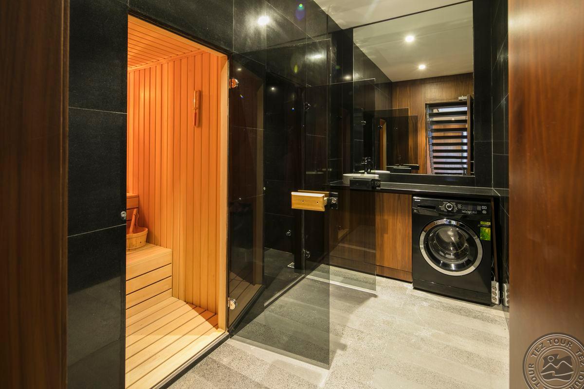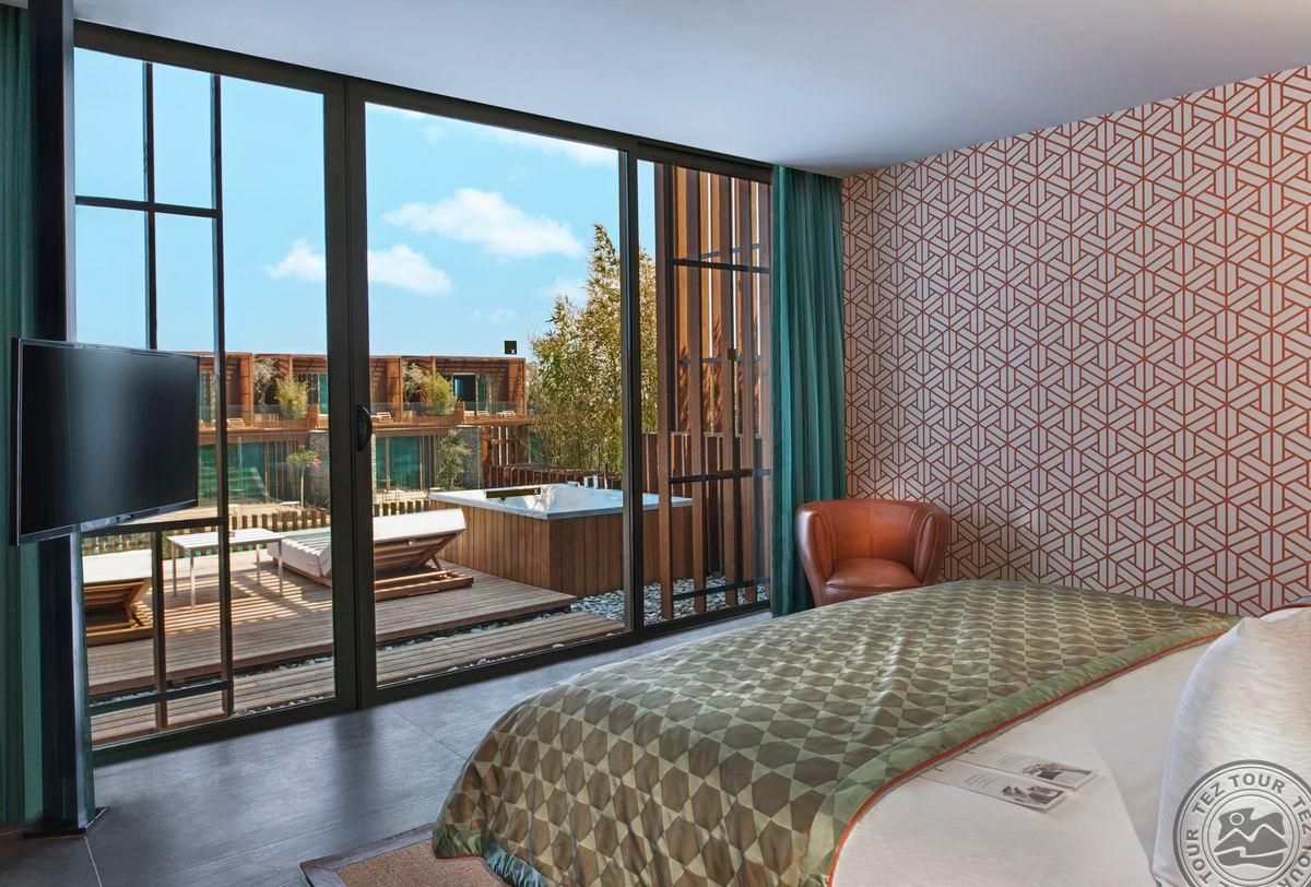 4 dviejų kambarių Maxx Laguna Villa 1 bedroom tipo numeriai (su tiesioginiu išėjimu prie baseino, svetainė, miegamasis atskirtas durimis, drabužinė, vonios kambarys su dušu, terasa su sūkurine vonia, maks. 3+1 asm. +1 kūdikis, 150 m2).