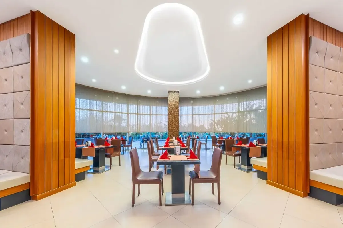 • Maistas ir gėrimai viešbučio restoranuose, kavinėse ir baruose, išvardintuose viešbučio aprašyme, yra tiekiami viešbučio administracijos nustatyta tvarka ir yra mokami priklausomai nuo užsisakyto maitinimo tipo
