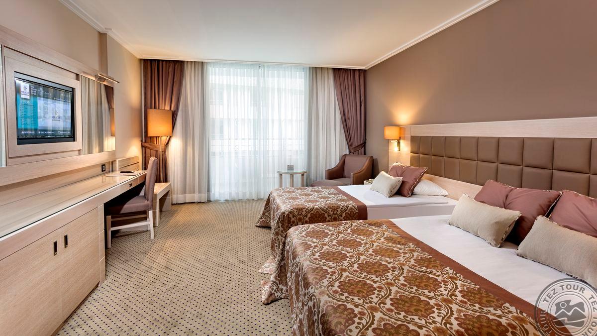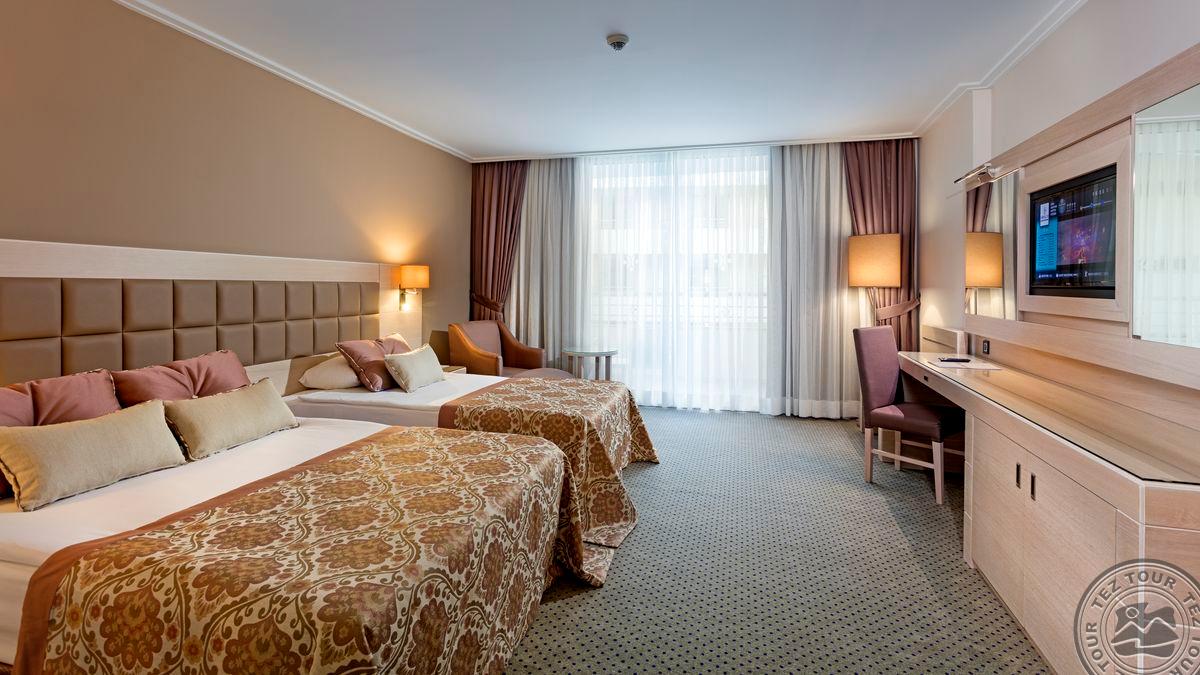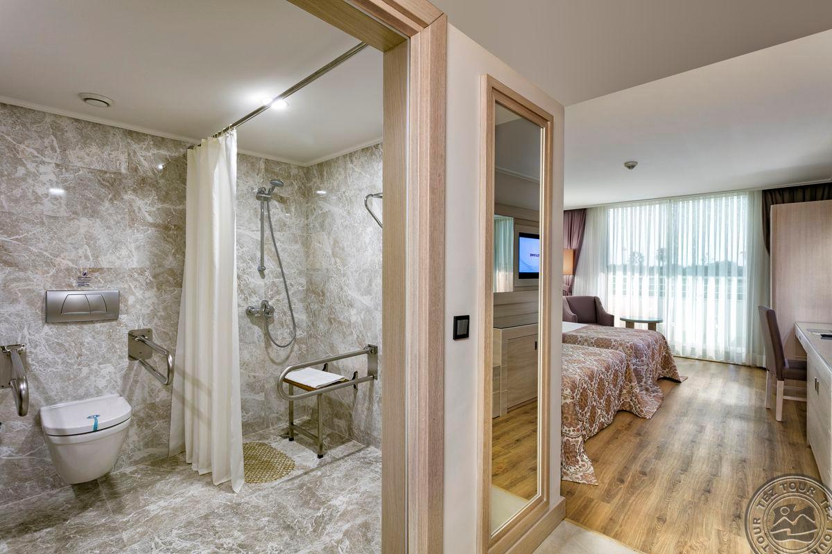 Garsėja savo spa. Family kamb., 2 miegamieji su durim, Standart viena erdvė. Labai erdvūs kambariai. Yra keletas baseinų, vaikams, pagrindinis, akvaparkas suaugusiems, kalneliai vaikams. 4 ala carte mokami, 20 eur. Paplūdimyje pirsas, kabanos kainos nuo 120 eur. Wifi free visur veikia. Importiniai mokami. Mini baro papildymas mokamas. 2 šildomi baseinai, 1 viduje, kitas lauke. Spa yra, sporto salė. Animacija aktyvi. Amfiteatre vyksta pasirodymai, keletas barų prie baseino, viduje. Toks nedidelis, bet jaukus. Paplūdimys netoli, smėliukas. Turistai pagrinde iš Europos, kartais rumunai atvyksta. Kitais metais bus dar vienas naujas pastatas birželį/liepą. Bus swim up kambariai. Tvarkingas, paprastas, jaukus viešbutis, kam nereikia kažko įspūdingo.