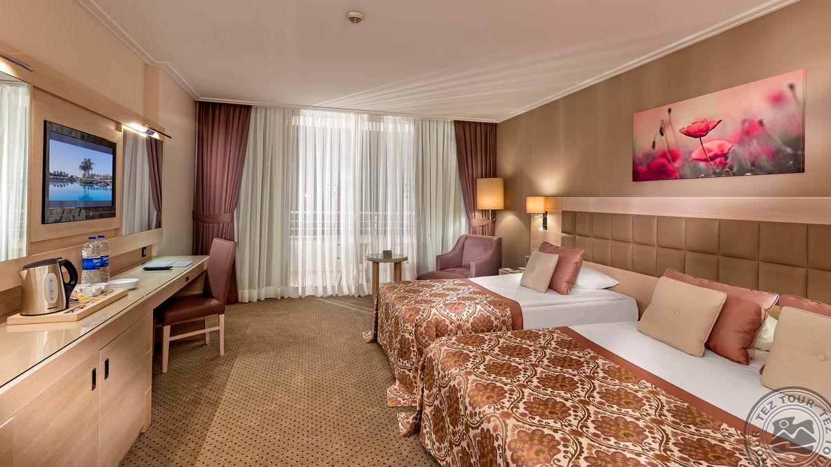 Miracle Resort Hotel Antalijoje yra prabangus 5 žvaigždučių viešbutis, puikiai tinkantis tiek poroms, tiek šeimoms, ieškančioms komfortiško poilsio. Viešbutis įsikūręs šalia nuostabaus Viduržemio jūros paplūdimio, siūlo erdvius, moderniai įrengtus kambarius su balkonais, iš kurių atsiveria nuostabūs vaizdai. Čia rasite didžiulę baseinų zoną, įvairius restoranus, kurie siūlo tarptautinius ir vietinius patiekalus, bei pramogas visai šeimai. SPA centras, sporto veiklos ir vakaro renginiai.