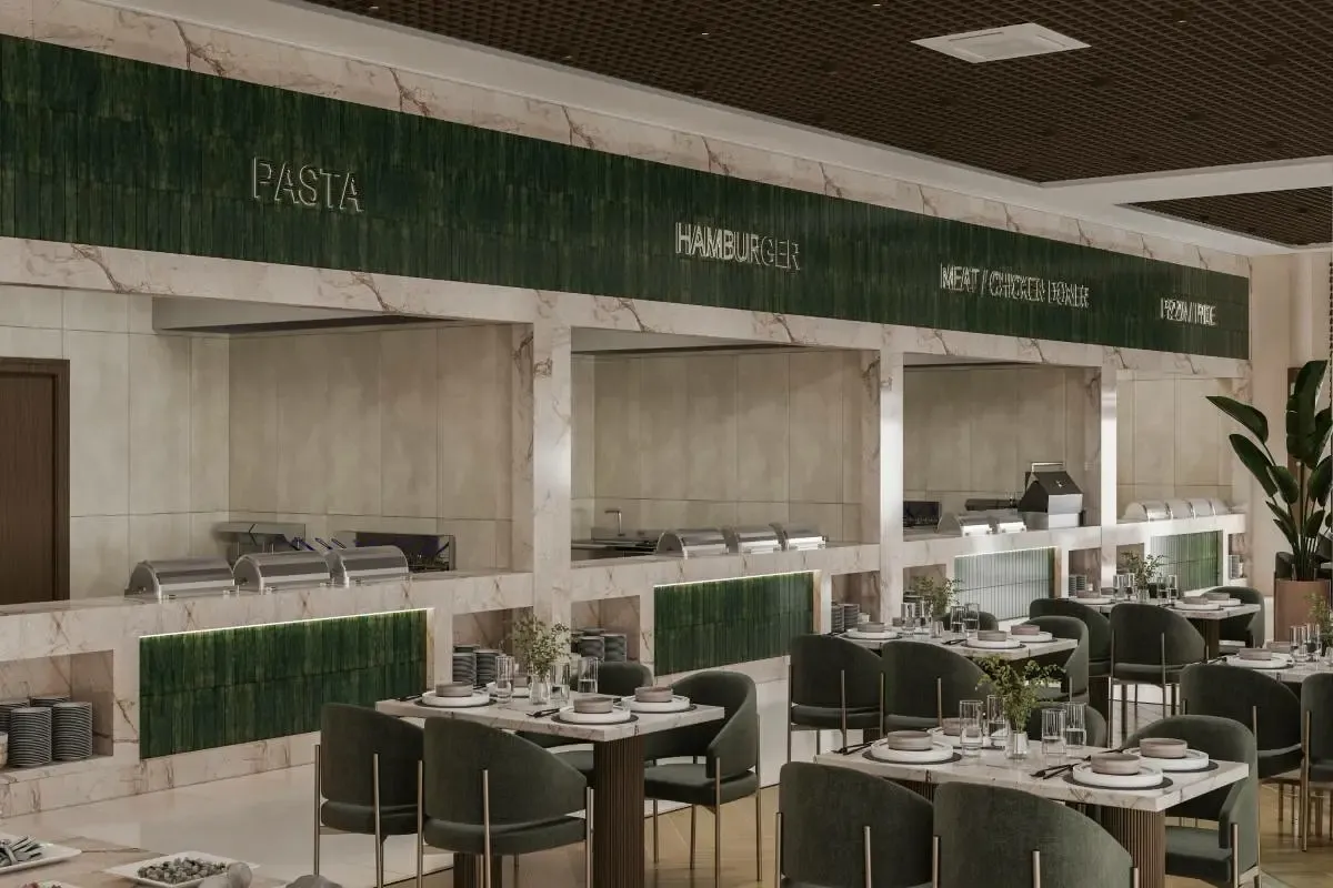 • 3 a la carte restoranai (italų, turkų, kinų)