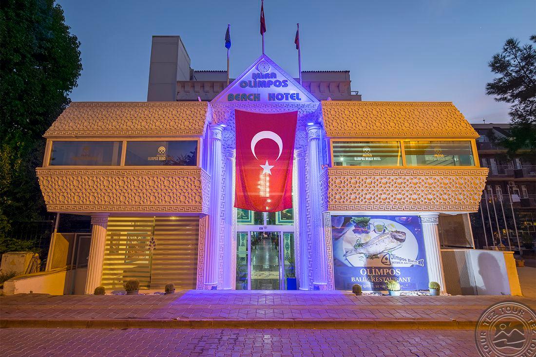 Kemere, priešais paplūdimį, įsikūrusiame 3 žvaigždučių viešbutyje „Olimpos Beach Hotel by RRH&R“ yra terasa, restoranas ir baras. Kiekvieną rytą viešbutyje patiekiami halal pusryčiai. Netoli viešbučio „Olimpos Beach Hotel by RRH&R“ yra Merkez Bati viešasis paplūdimys, Kemer paplūdimys ir Ayisigi paplūdimys. Viešbutis rekomenduojamas poroms.