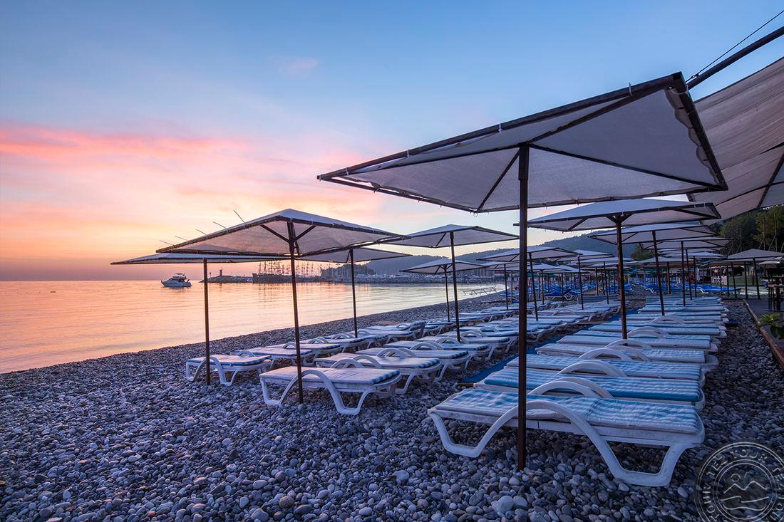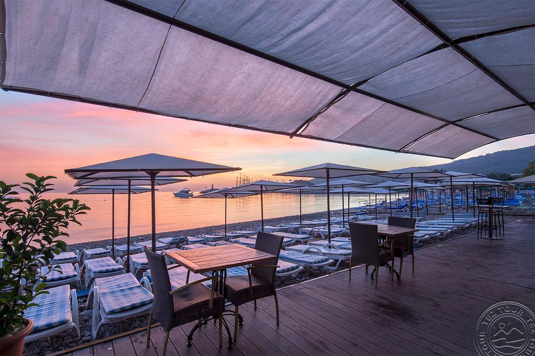 Apie 55 km iki Antalijos miesto oro uosto, apie 100 m iki Kemero centro, ant jūros kranto.