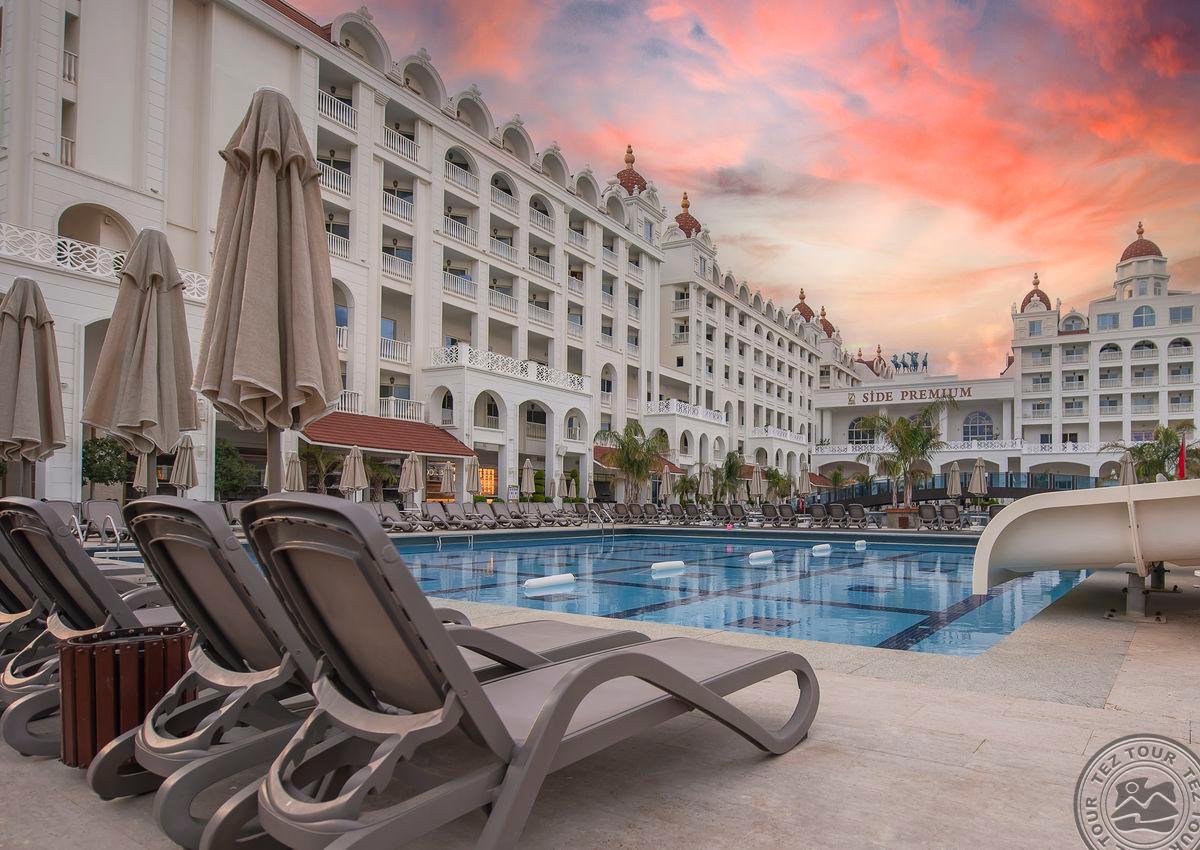 "Oz Hotels Side Premium" 5 žvaigždučių viešbutis, kuriame yra visos Viduržemio jūros regiono gamtos grožybės, tvyro rami ir užburianti Side regiono atmosfera, laisva nuo miesto triukšmo, unikali architektūra integruota į šią atmosferą. Viešbutyje veikia A'la carte restoranai, kuriuose patiekiami išskirtiniai turkų, Tolimųjų Rytų ir italų virtuvės patiekalai. SPA centre, teikiamos visų rūšių paslaugos fizinei ir psichinei sveikatai, išskirtiniai butikai ir pramogų centrai, baseinai, jūros ir sausumos sportas.