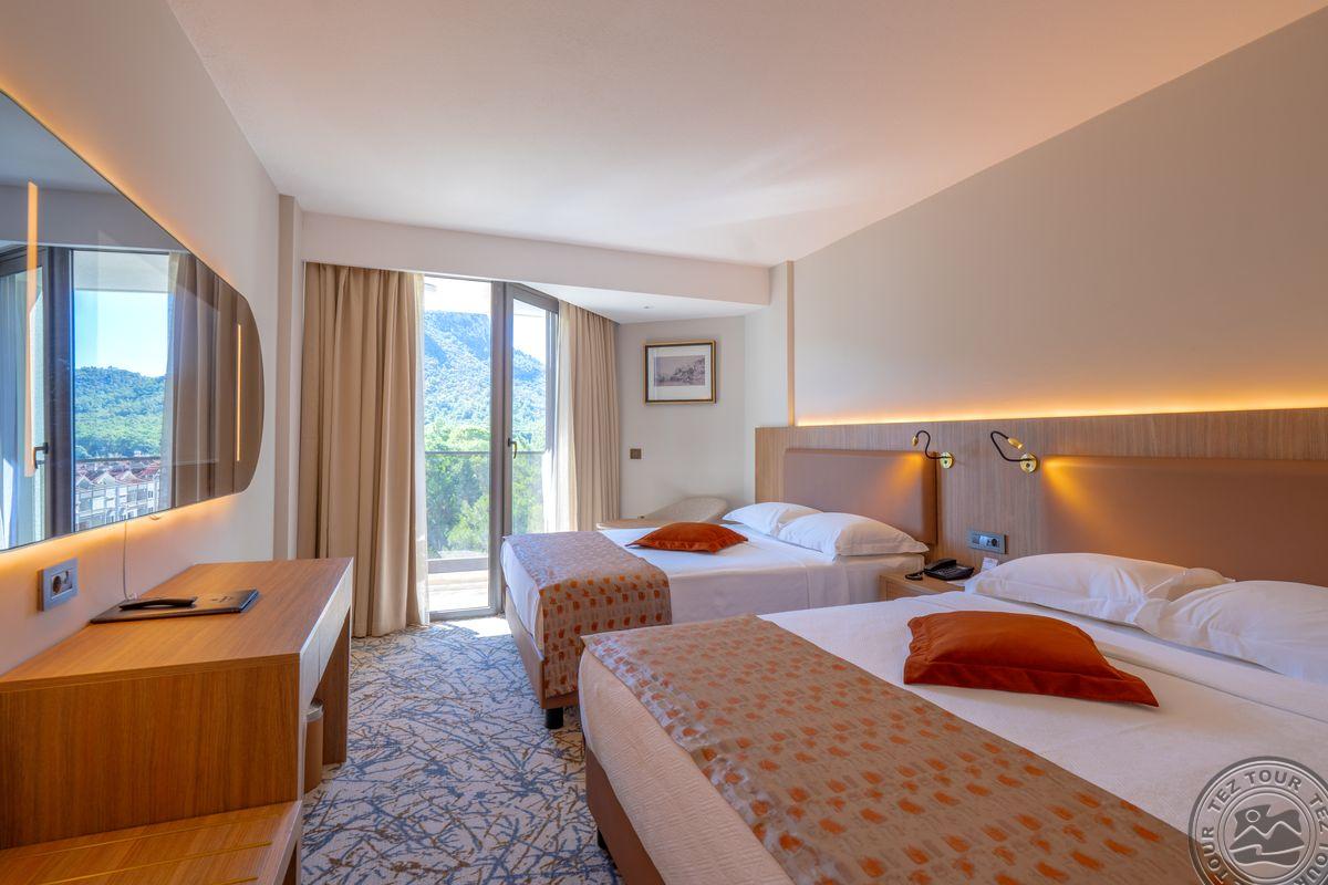 16 dviejų kambarių Family Sea View tipo numerių(2 miegamieji, 2 vonios kambariai, 1 King size tipo lova (200x200 cm) Ir 2 prancūziškos lovos (145x200 cm), papildomos vietos nėra, maks. 5+1 asm., 52 m2).