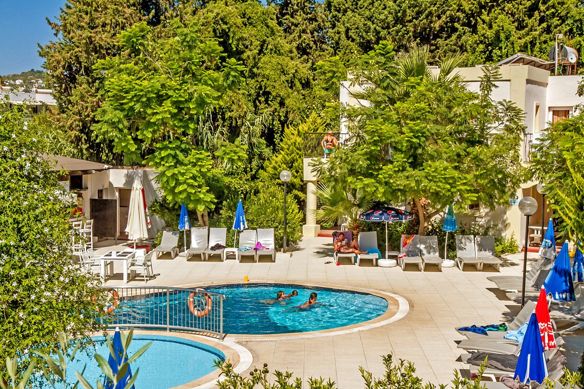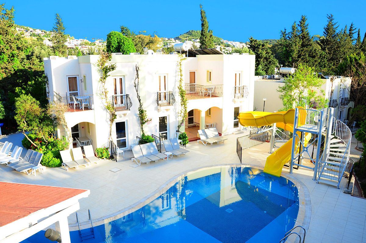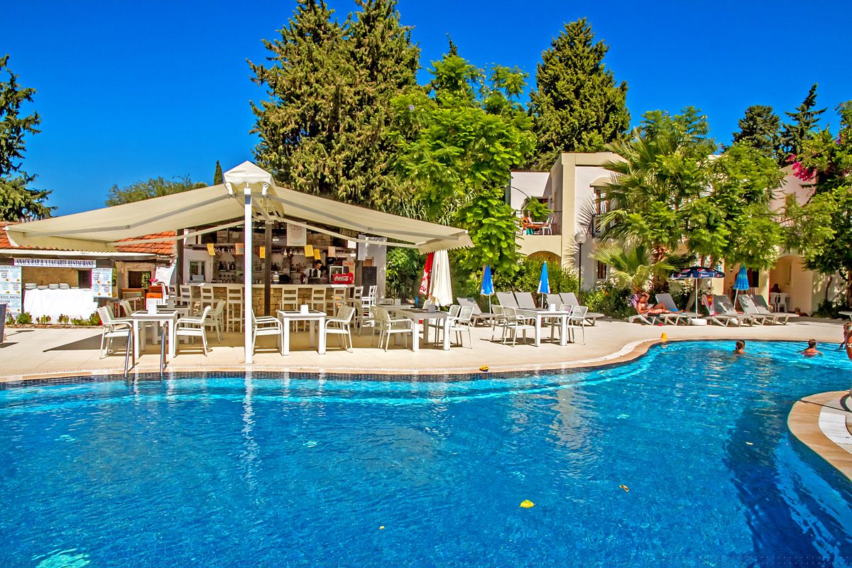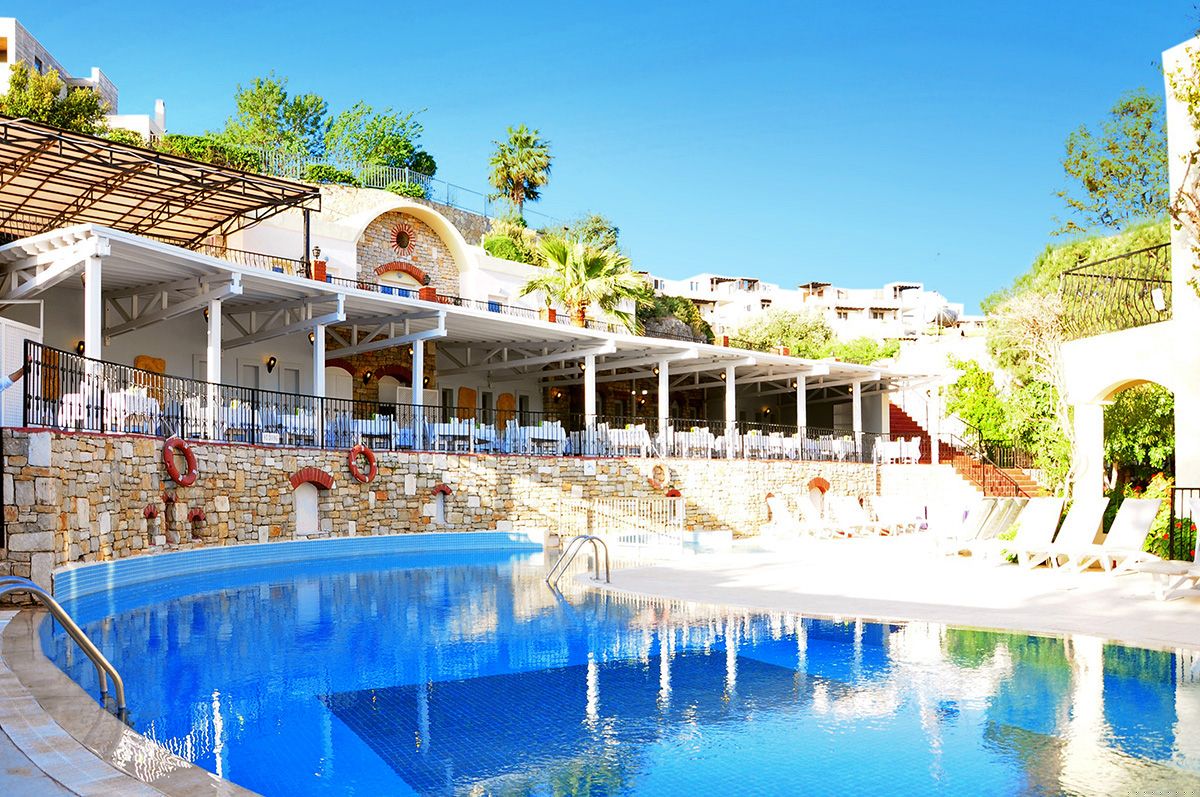 Viešbutis įsikūręs apie 4km iki Bodrumo miesto centro. Išeiti už viešbučio teritorijos tikrai yra kur, šalia autobuso stotelė. Teritorija labai nedidelė, iki jūros reikia paeiti arba veža transportas kas 10min. Turi du baseinus ir du užkandžių barus, duoda ledų. Seifas 2.5 eur dienai, wifi nemokamas pagrindinėse erdvėse, paplūdimio rankšluosčiai ir skėčiai bei gultai nemokamai. Standard kambariai yra su stiklinėmis durimis, stiklas uždengtas užuolaidėle, balkonai vienas šalia kito su kaimynų, kaip sedėtum prie bendro stalo. Šeimyniniai atskirti durimis, bet buvo nemalonus kvapas. Turi vieną kalnelį, animacijos nėra, pagrinde vien britai. Skirtas eko keliautojams, kam reikia miesto viešbučio.