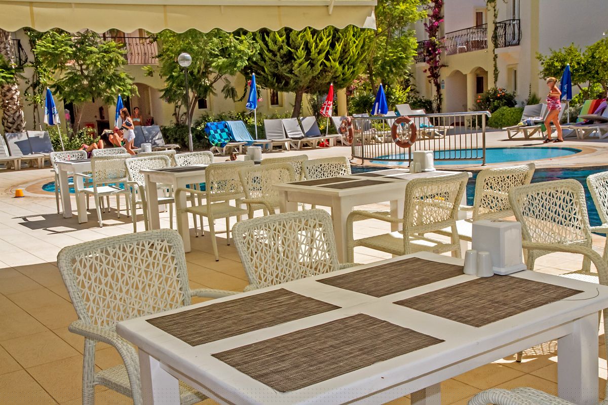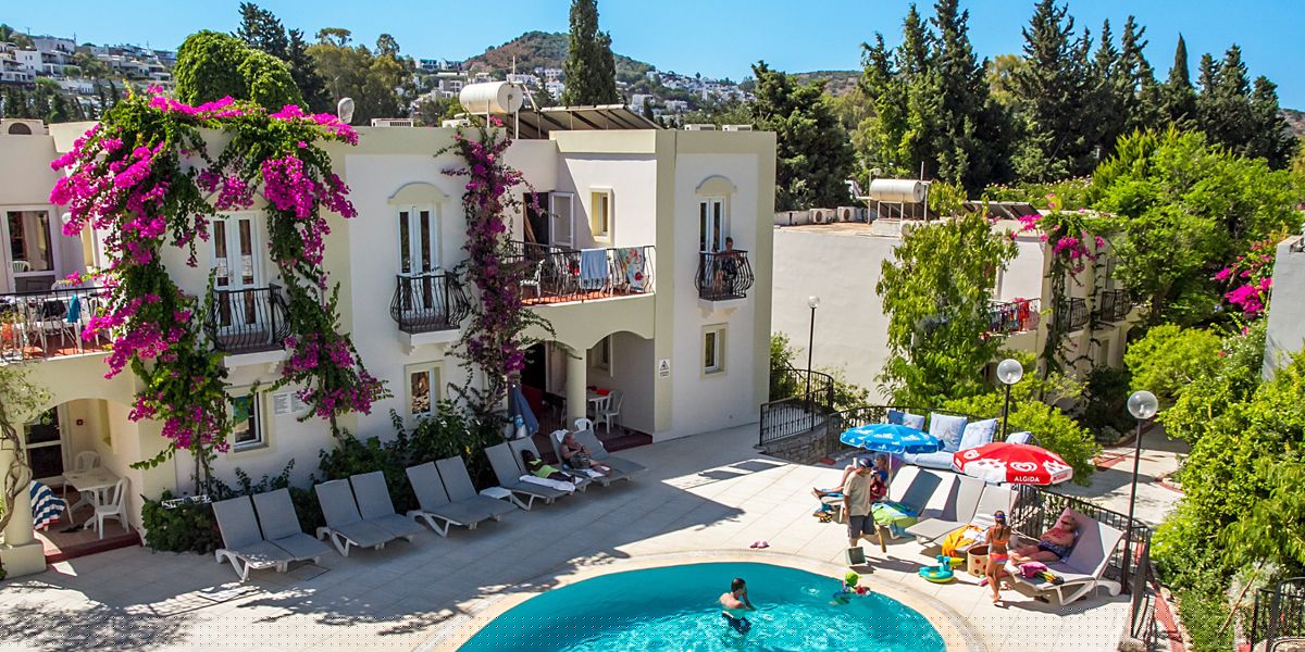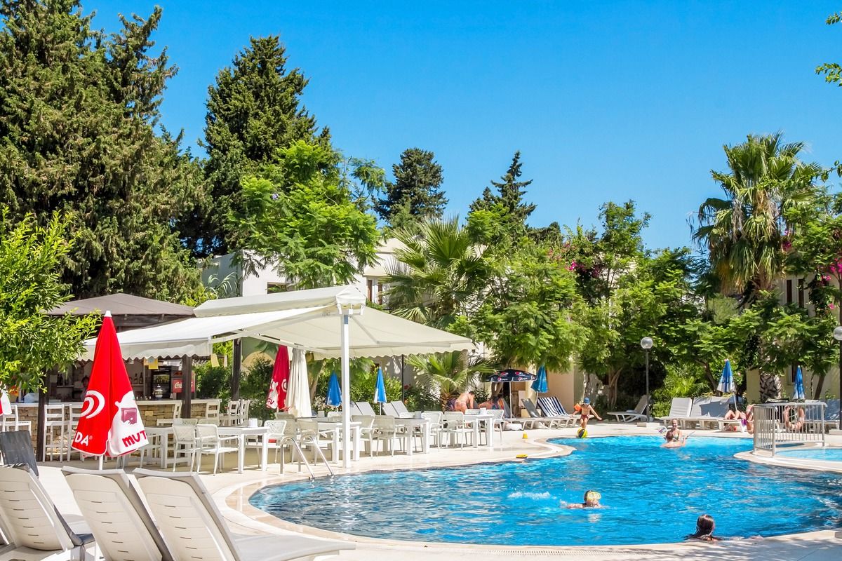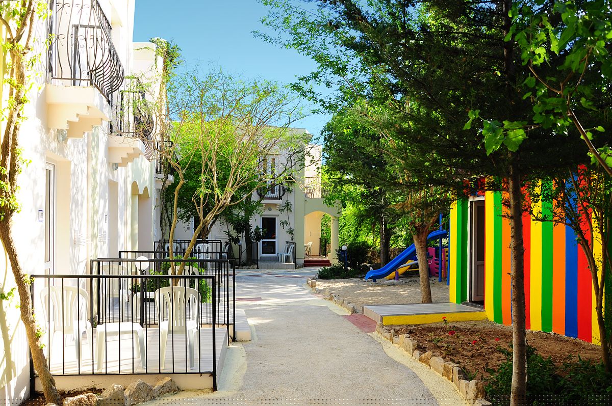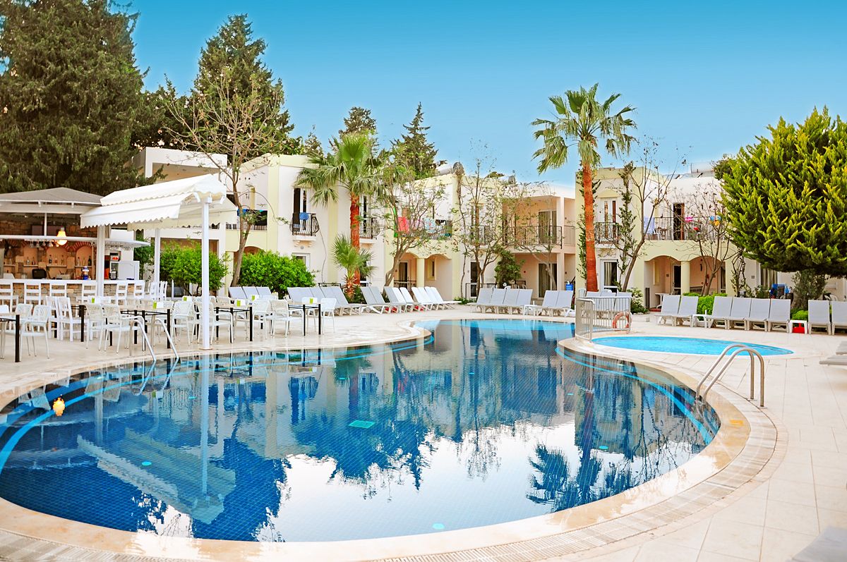 Viešbutis įsikūręs apie 4km iki Bodrumo miesto centro. Išeiti už viešbučio teritorijos tikrai yra kur, šalia autobuso stotelė. Teritorija labai nedidelė, iki jūros reikia paeiti arba veža transportas kas 10min. Turi du baseinus ir du užkandžių barus, duoda ledų. Seifas 2.5 eur dienai, wifi nemokamas pagrindinėse erdvėse, paplūdimio rankšluosčiai ir skėčiai bei gultai nemokamai. Standard kambariai yra su stiklinėmis durimis, stiklas uždengtas užuolaidėle, balkonai vienas šalia kito su kaimynų, kaip sedėtum prie bendro stalo. Šeimyniniai atskirti durimis, bet buvo nemalonus kvapas. Turi vieną kalnelį, animacijos nėra, pagrinde vien britai. Skirtas eko keliautojams, kam reikia miesto viešbučio.