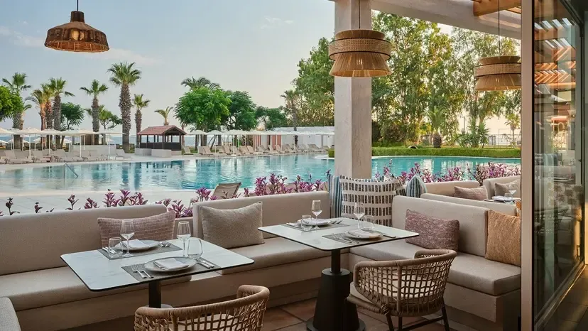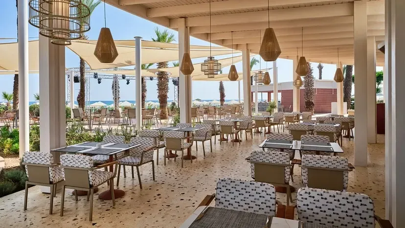 5 a la carte - 3 nemokamai. Rezervacija Per programėlę: Lotus 25 eur asm, 30 eur steak, iki 12 m. 50 proc pigiau. Minibaras pildomas kasdien. Chalatu nėra. Vežimėlis 5 eur diena. Depozitas 60 eur. Yra 18+ klubas. Restoranas, paplūdimys. Teritorija graži, didelė.