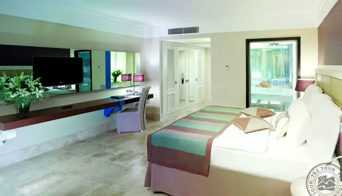 20 vieno kambario terrace suite room tipo numerių (minkštų baldų komplektas ir king size bed tipo lova, terasa su sūkurine vonia, room service ir spartusis internetas – nemokamai, su tiesioginiu vaizdu į jūrą, chalatas, šlepetės, maks. 2 asm., 70 m2);