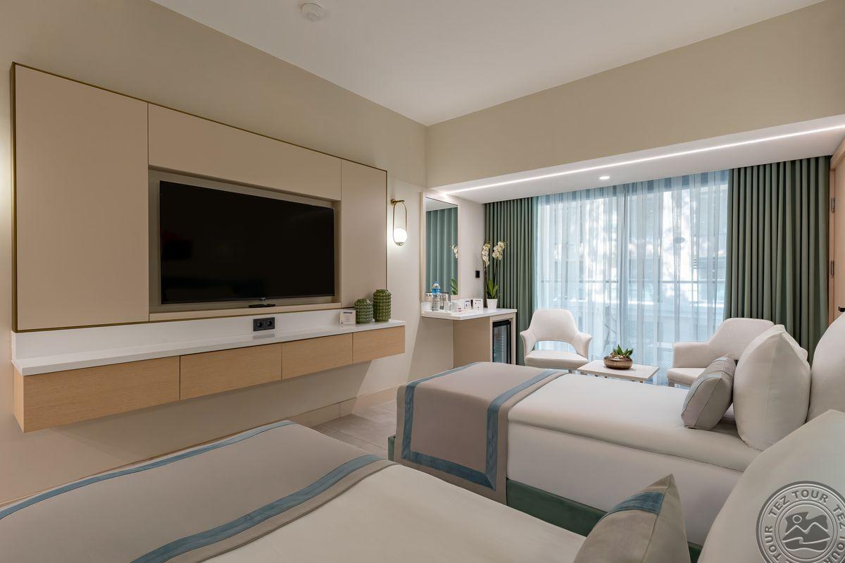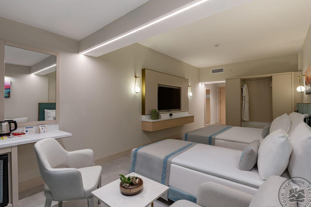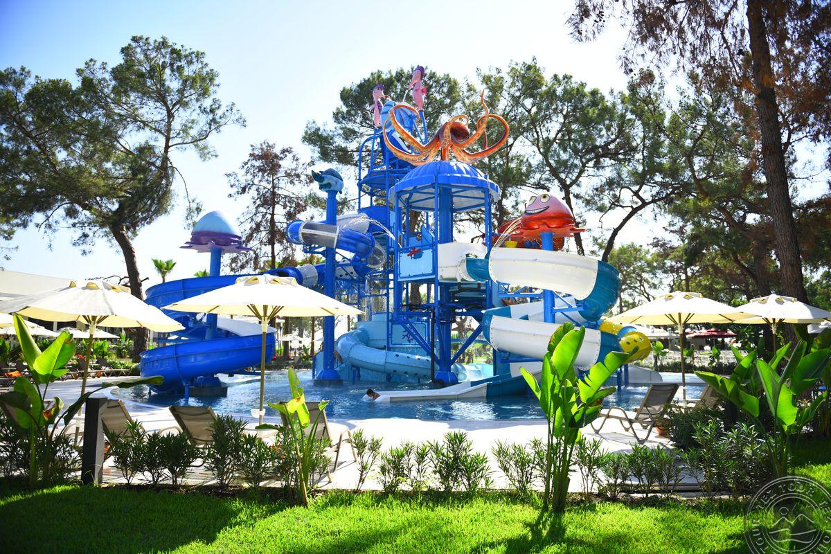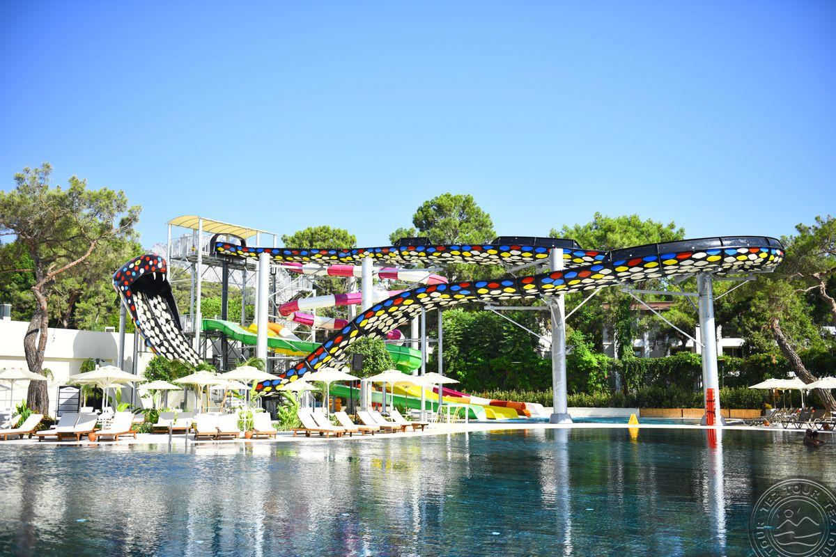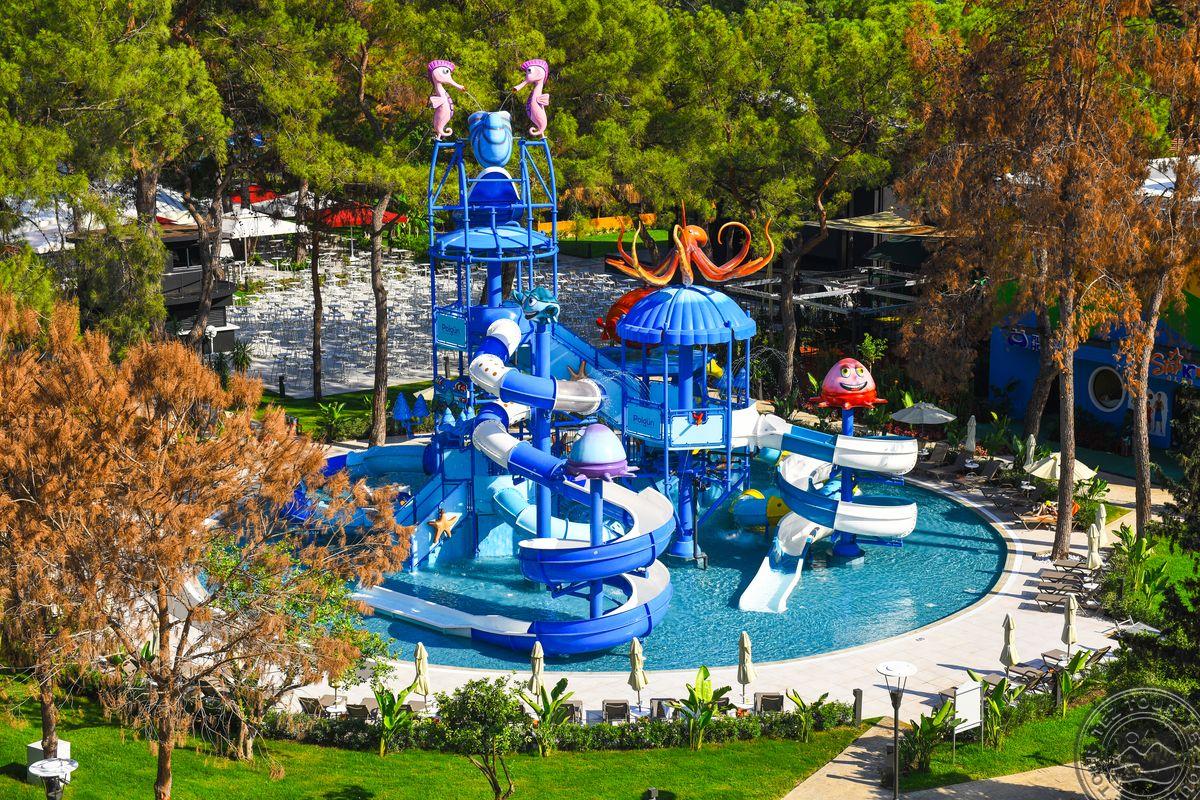 60 000 kv. m teritorija, jaukiai ir patogiai išplanuota, o praėjusiais metais buvo atnaujintas pagrindinis pastatas bei renovuoti garden tipo kambariai. Taikoma „Ultra viskas įskaičiuota“ sistema, todėl maistas prieinamas visą parą, yra pasirinkimų veganams, alergiškiems ir gliuteno netoleruojantiems žmonėms. Pagrindiniame pastate įrengtas centrinis kondicionierius. Visuose kambariuose – kasdien papildomas mini baras su alumi, chalatai, šlepetės, seifai, svarstyklės, lyginimo lentos, o kambariai kasdien tvarkomi, keičiami rankšluosčiai. Siūlomi įvairūs kambarių tipai: erdvūs ir modernūs deluxe superior 3+1, spalvingi deluxe family su dviaukšte lova vaikams ir galimybe gauti PlayStation į kambarį, nedideli garden kambariai su twin, double lovomis. Yra ir deluxe suite sea view kambariai su dviem atskirais kambariais, dviem vonios kambariais ir balkonais.Lauke įrengti penki baseinai, šildomas tik vidaus baseinas, o aktyviam poilsiui – du vandens parkai: vienas su 8 kalneliais suaugusiesiems, kitas su 5 kalneliais vaikams. Veikia išskirtinis dviejų aukštų mini klubas: vaikams nuo 4 iki 12 metų ir paaugliams nuo 13 iki 18 metų, jame įrengta vidinė krepšinio aikštelė, TV zona, biliardas ir kitos veiklos. Taip pat veikia hamamas ir sauna, kurie svečiams nemokami. Yra vienas pagrindinis restoranas ir 2 a la carte restoranai – apsilankymas kainuoja 20–25 €, 50 % nuolaida vaikams nuo 6 iki 12 metų. Animacija aktyvi visą dieną, diskoteka veikia iki 2 val. nakties. Paplūdimys 200 m ilgio, su piersu, baru ir gultais, kabanos kainuoja 70–90 €, o išvykimo dieną galima naudotis specialiu late check-out kambariu su dušais, tuoletais ir bendra erdve ramiam pasisėdėjimui. Viešbutis planuoja toliau modernizuotis ir žiemą planuojama įrengti „swim-up“ kambarius.