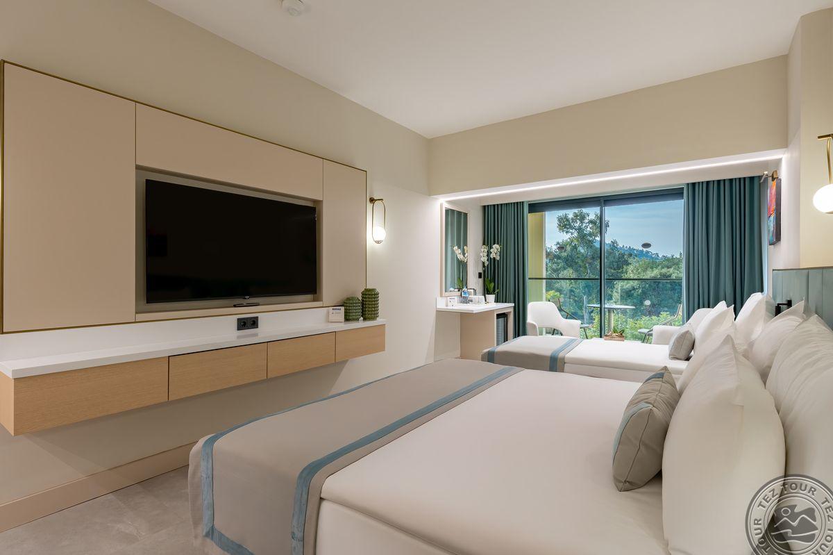 30 Deluxe Superior Room tipo numerių (pagrindinis pastatas, su vaizdu į sodą, kalnus arba jūrą, dvigulė ir  1 viengulė lova, maks. 2+2 arba 3 asm., 38 kv.m);
