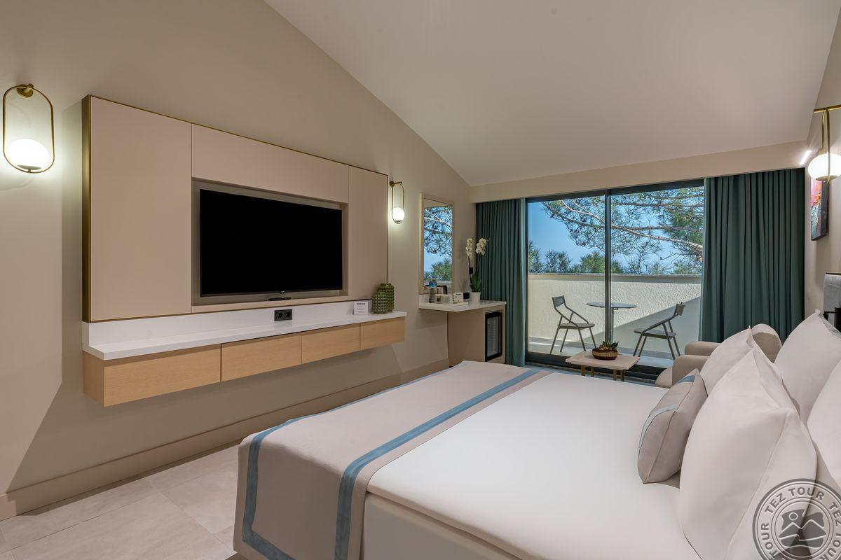 147 Deluxe Room tipo numeriai (pagrindiniame pastate, su vaizdu į sodą, kalnus arba jūrą, dvigulė arba 1 viengulė lova, maks. 2+2 arba 3 asm., 36 kv.m), yra 4 numeriai pritaikyti neįgaliesiems;