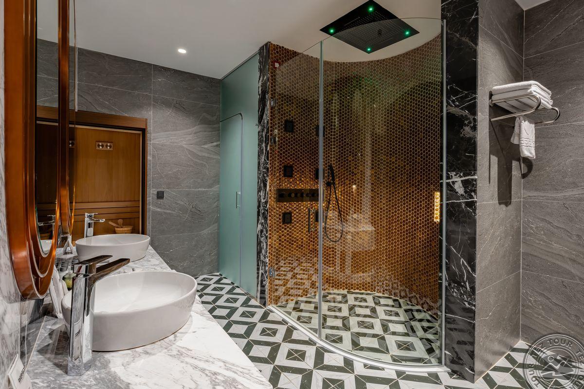 King Suite tipo numeriai (pagrindinis pastatas, 5 aukštas, su vaizdu į sodą, svetainė, virtuvė, 2 miegamieji, 2 vonios kambariai, sūkurinė vonia, sauna, maks. 4asm.+kūdikis, 225 kv.m).