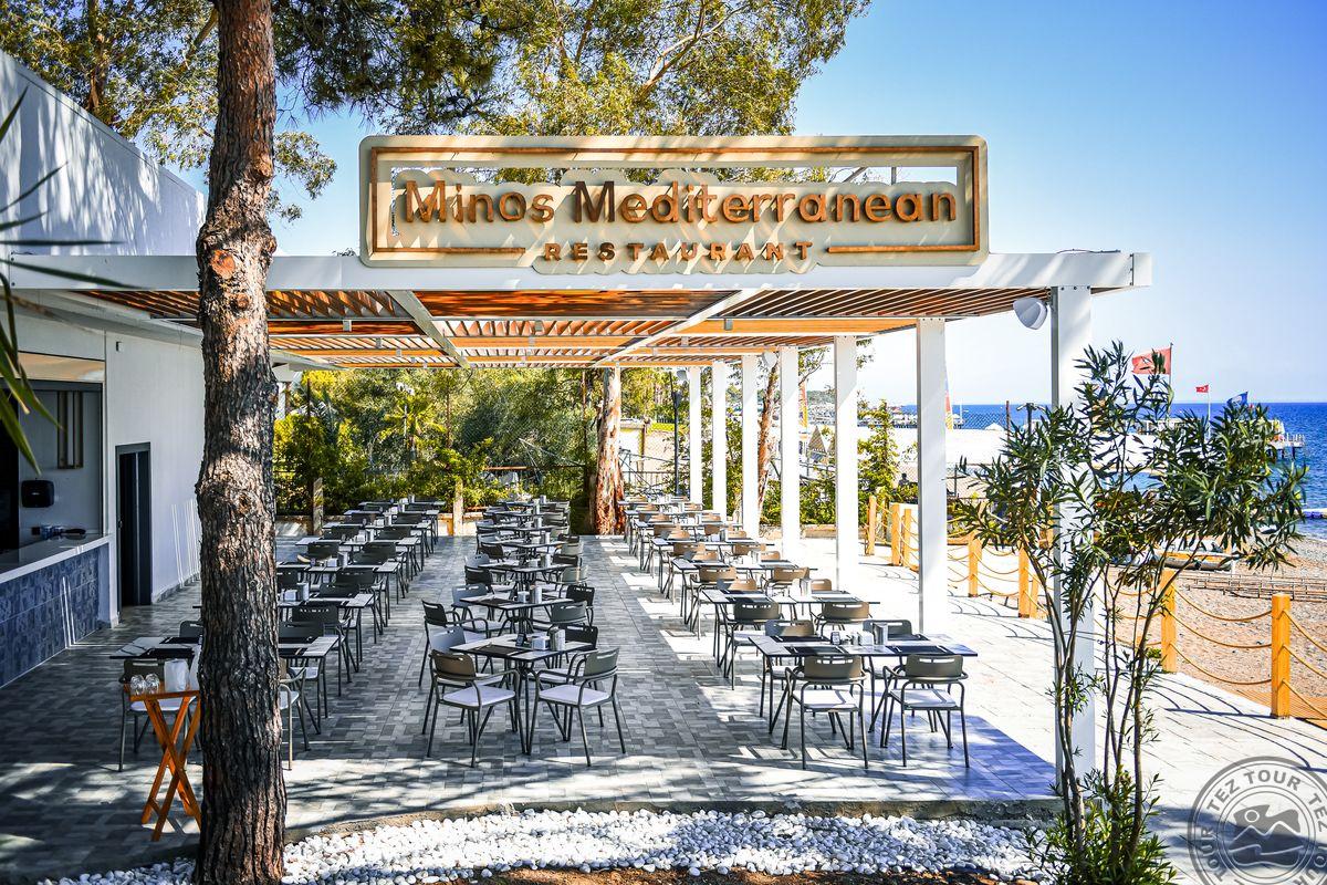 • a la carte restoranai: 2 (MINOS MEDITERANEAN REST, turkiškas - 1 nemokamas apsilankymas, jei viešnagė ilgesnė nei 7 n., ALEXANDER'S STEAK HOUSE - mokamai)
