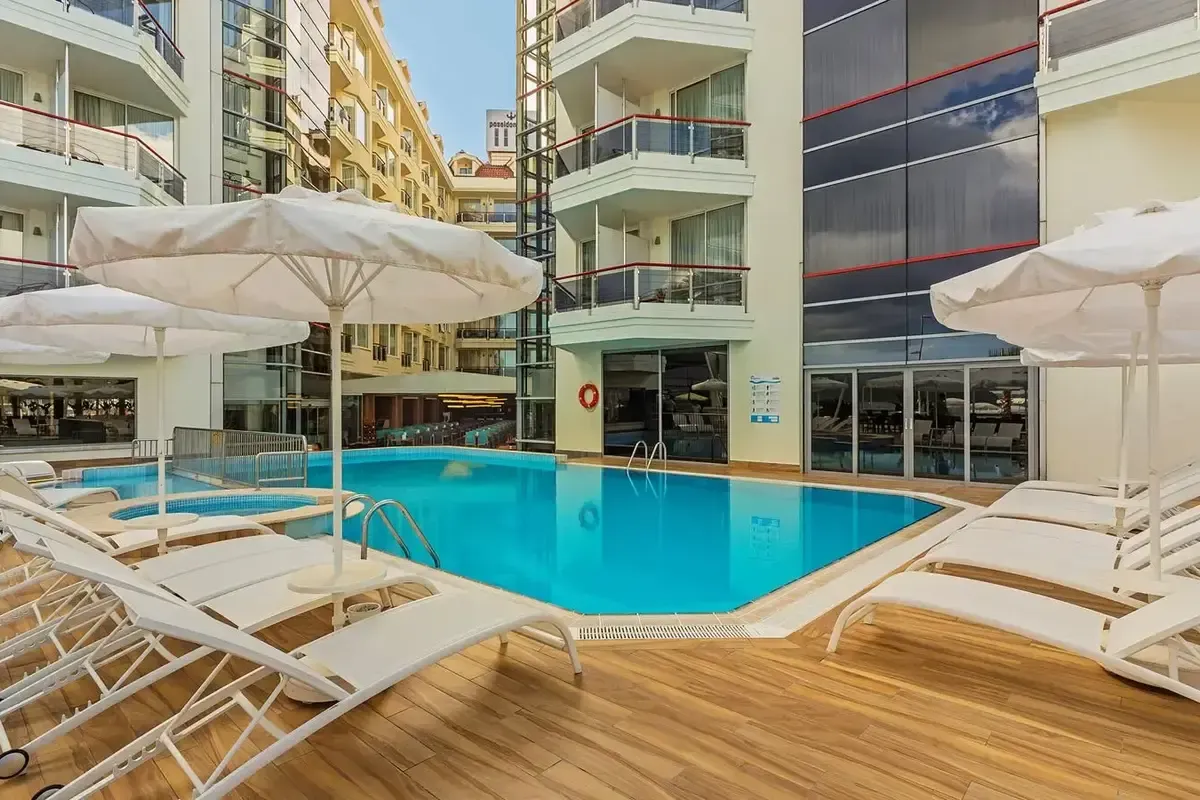 Puikios šeimos atostogos. Visas viešbutis labai draugiškas, paslaugus ir palaikantis. Taip pat visame viešbutyje sėkminai laikomasi COVID-19 saugumo reikalavimų. Privalumai: fantastiškas personalas ir valdyba. Viešbutis turi švarų paplūdimį su mėlyna vėliava. Vieta puiki, netoli miesto centro, pėsčiomis iki ligoninės ir prekybos centro. Viešbučio valdyba ir personalas darė viską, kad išvyktume švariomis galvomis ir kūnais. Galiu sakyti, kad tai hibridinis viešbutis, tinkantis ir vyresnėms, ir jaunesnėms poroms. Paplūdimys ir visi patogumai už 10 m nuo viešbučio - labai lengva pasiekti. Minusai: baseinas šiek tiek mažas, „viskas įskaičiuota“ gėrimų meniu galėtų būti įvairesnis, bet galima užsisakyti papildomai už prieinamą kainą.