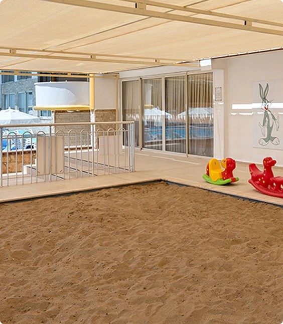 This family-friendly hotel features a swimming pool and a sandy-pebble beach accessible via an underground passage. The hotel offers a variety of activities for adults and children, including water sports. A kids' club is also available for children. Guests can also use the sauna, steam room, or book a massage for a fee. The hotel restaurant serves international cuisine.