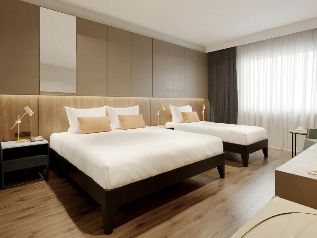 Pastatytas 1990 metais, atnaujintas 2020 metais, viešbutyje yra apie 112 numerių: