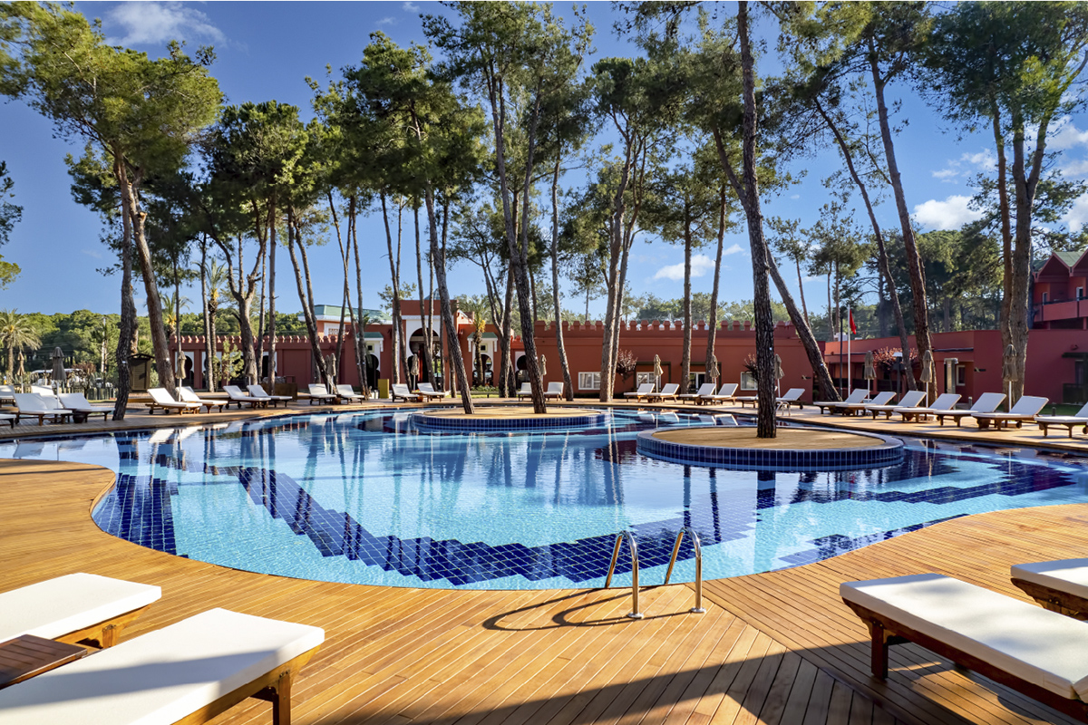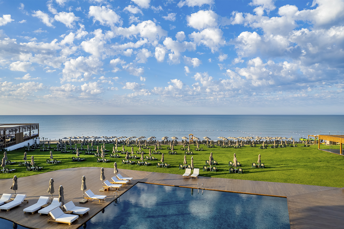 A hotel for romantic and family holidays. Guests are offered a beach, several swimming pools. Daytime and evening entertainment programs are provided. Restaurants and bars are open.
