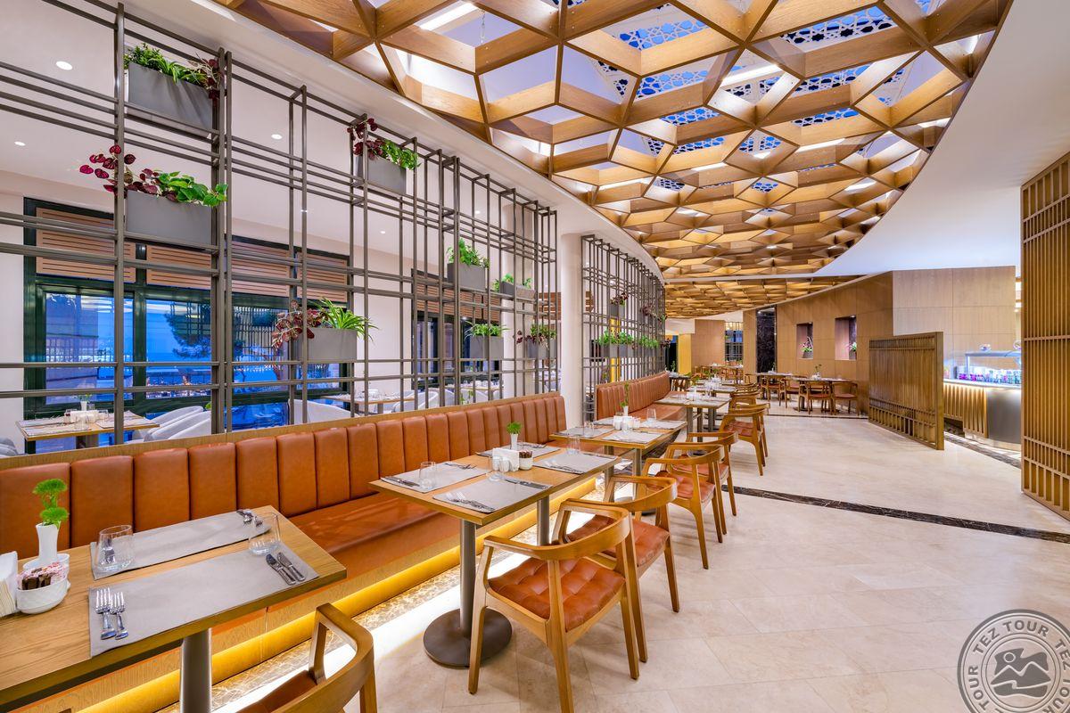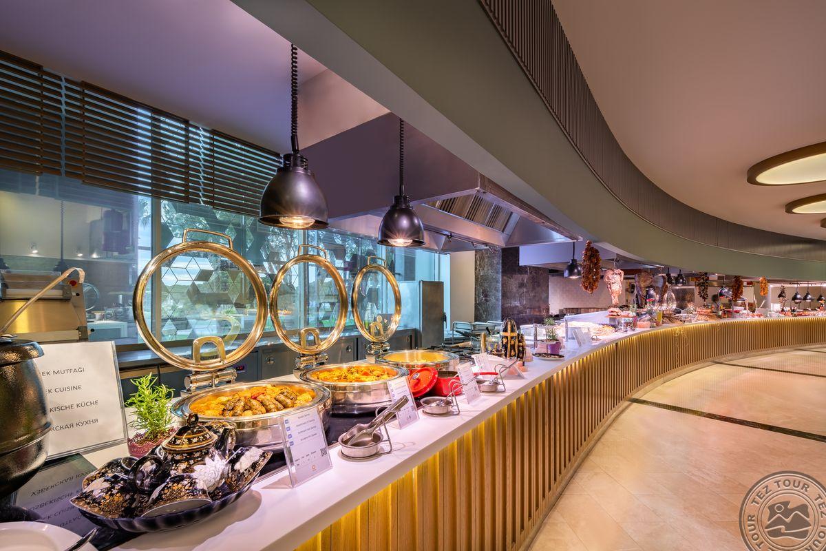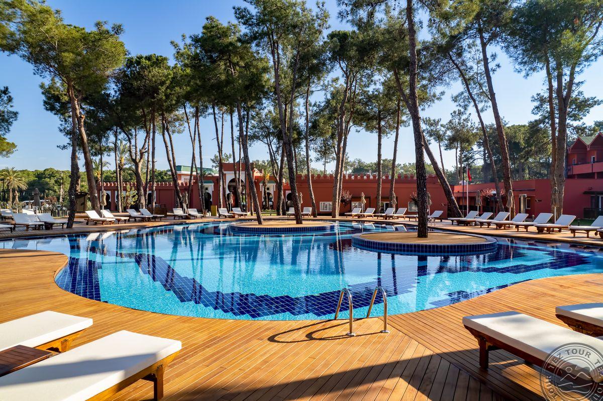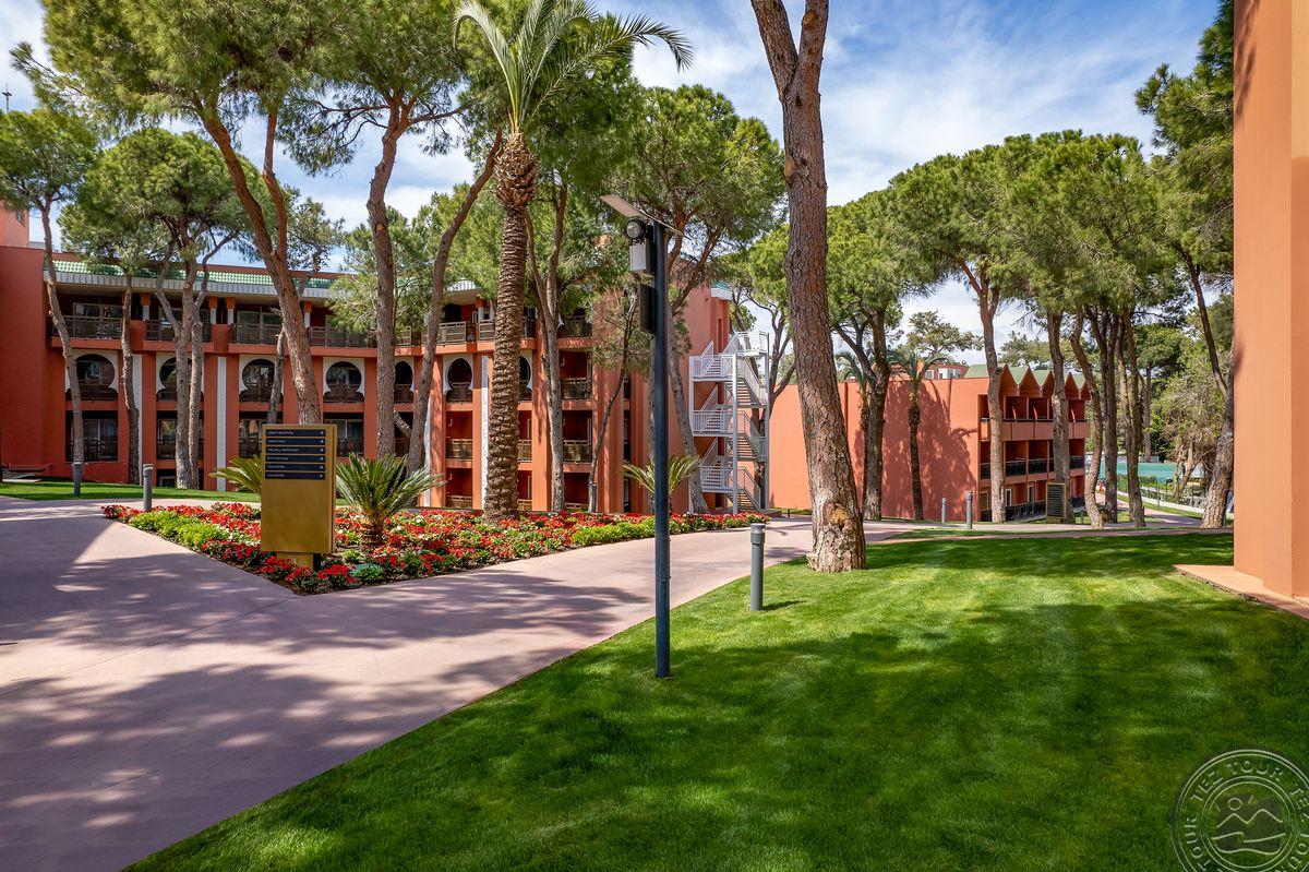 Kambariai įrengti sename viešbutyje, todėl matosi nusidėvėjimas, reiktų renovacijos. Patys kambariai erdvūs, įrengti gan paprastai, bet gražiai. Pagrindiniame pastate kambarių stilistika vienoda. Teritorija labai didelė, graži, tvarkinga, daug skirtingų erdvių. Viešosios erdvės atnaujintos, šiuolaikiškos ir labai jaukios. Po teritoriją vežioja specialus viešbučio transportas kas 15min. Orient dalis ramesnė, žalesnė, kambariai Maroko stiliumi padaryti. Vilos su atskirais baseinais. Paplūdimys smėlis, bet gultai plastikiniai ir atrodo pigiai. Yra 9 baseinai. Vidaus baseinas šildomas. Yra smulkenų parduotuvė. Apsistojus savaitę vienas kartas a la carte nemokamas. Būna gyvos muzikos vakarai. Galima pėstute nueiti iki Beleko miesto. Suteikia nemokamą apilankymą pramogų prake “Land of Legends”.
