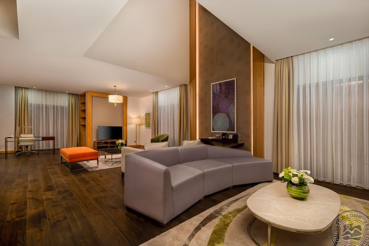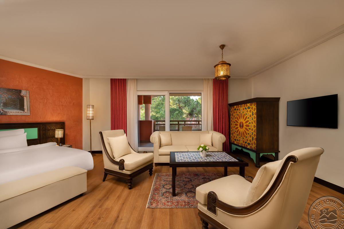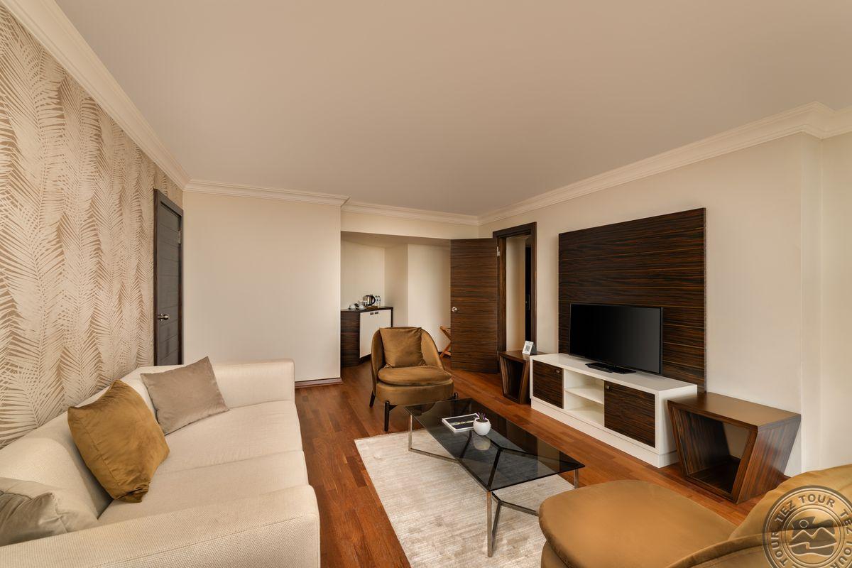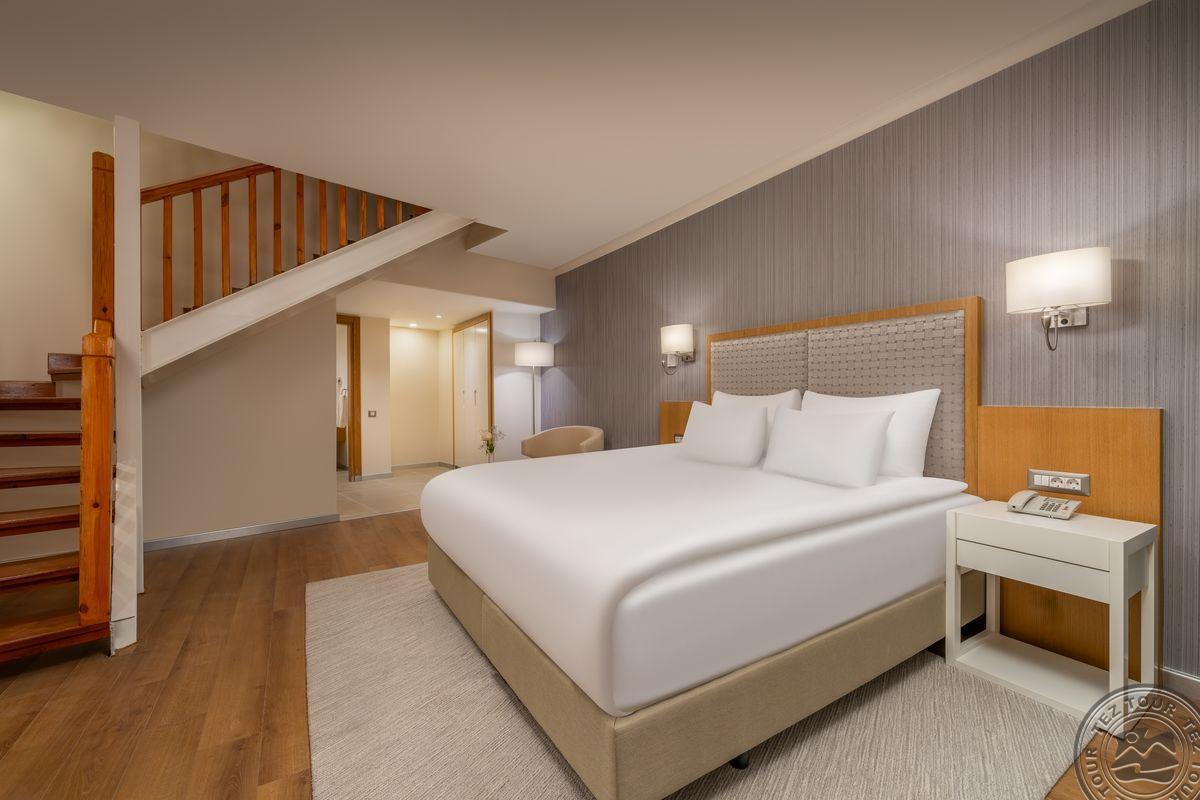 9 dviejų kambarių Sultan Suite With Jacuzzi tipo numeriai (svetainė, miegamasis atskirtas durimis, vonios kambarys su sūkurine vonia ir dušu, maks. 3 asm. + kūdikis, 86 m2).