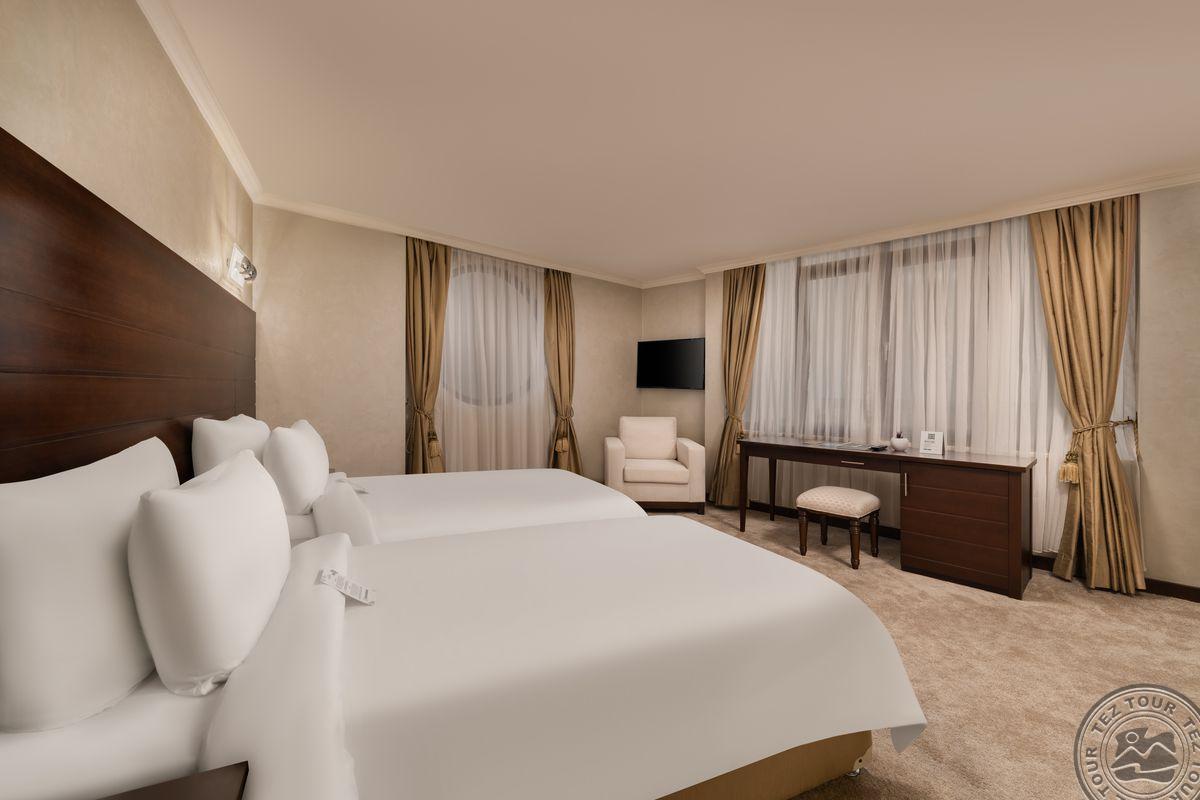 10 dviejų kambarių Orient Suite With Jacuzzi tipo numerių (2 miegamieji atskirti durimis, 2 vonios kambariai, vienas iš jų su sūkurine vonia, maks. 4+1 asm. + 1 kūdikis, 92 m2).