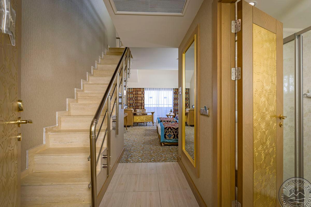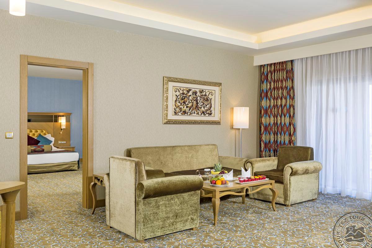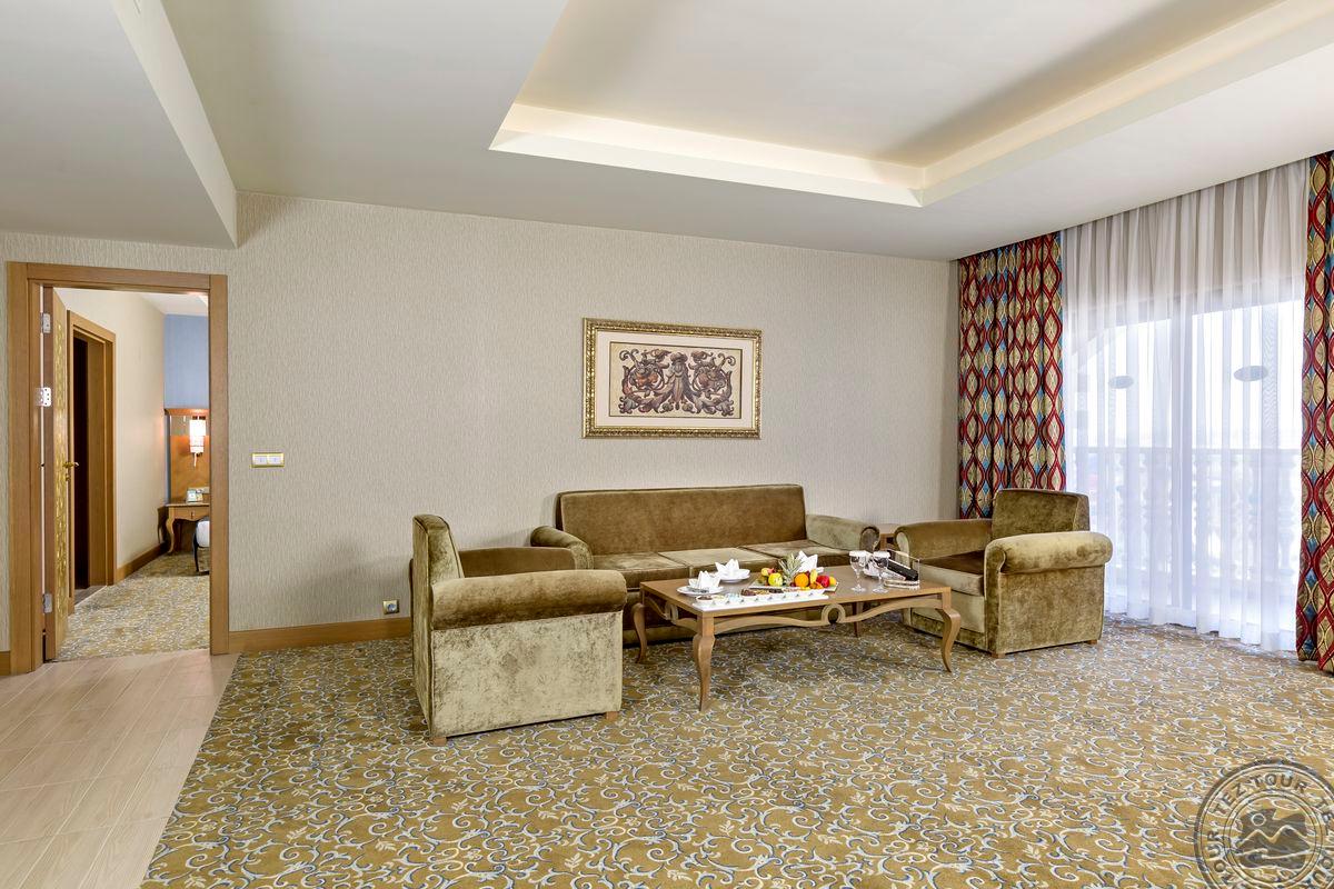24 trijų kambarių deluxe suite tipo numeriai (svetainė, 2 miegamieji atskirti durimis, 2 vonios kambariai (viename iš jų sūkurinė vonia, kitame dušas), maks. 4 asm., 85 m2).