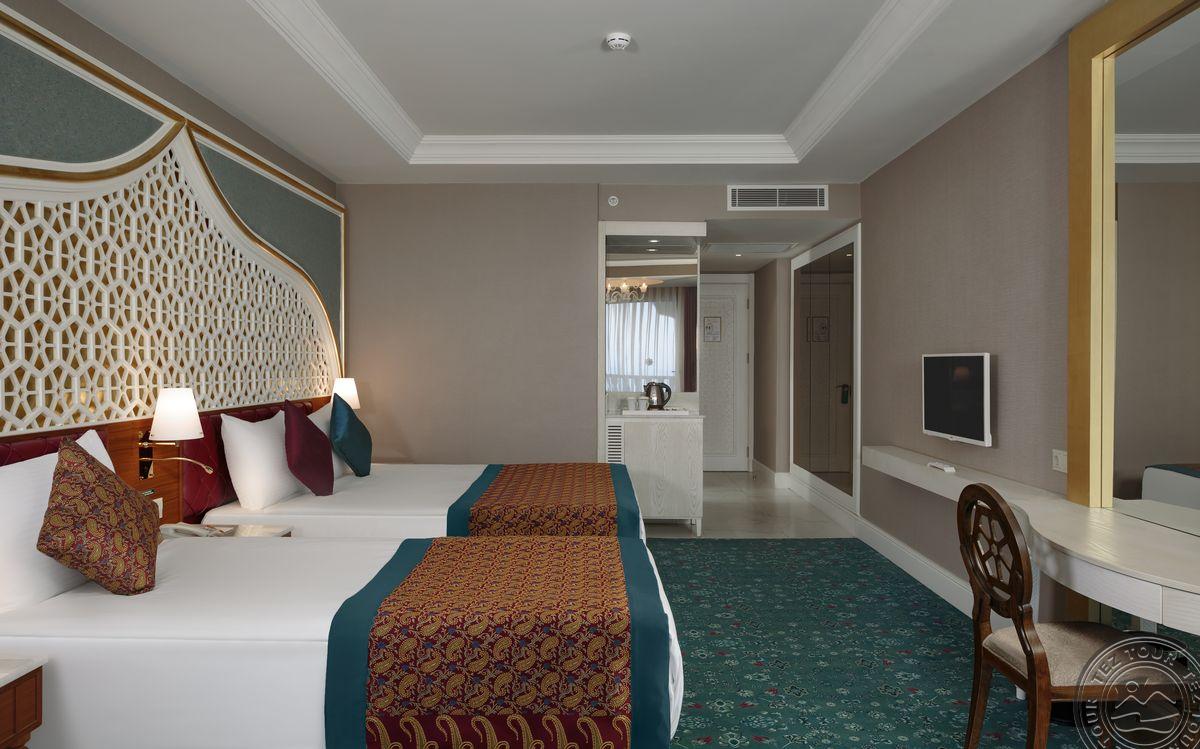 38 dviejų kambarių Taj Mahal family rooms tipo numeriai (prieškambaris, 2 miegamieji atskirti durimis, 2 vonios kambariai: vienas su sūkurine vonia, kitas su dušo kabina, maks. 4 asm., 77 m2).