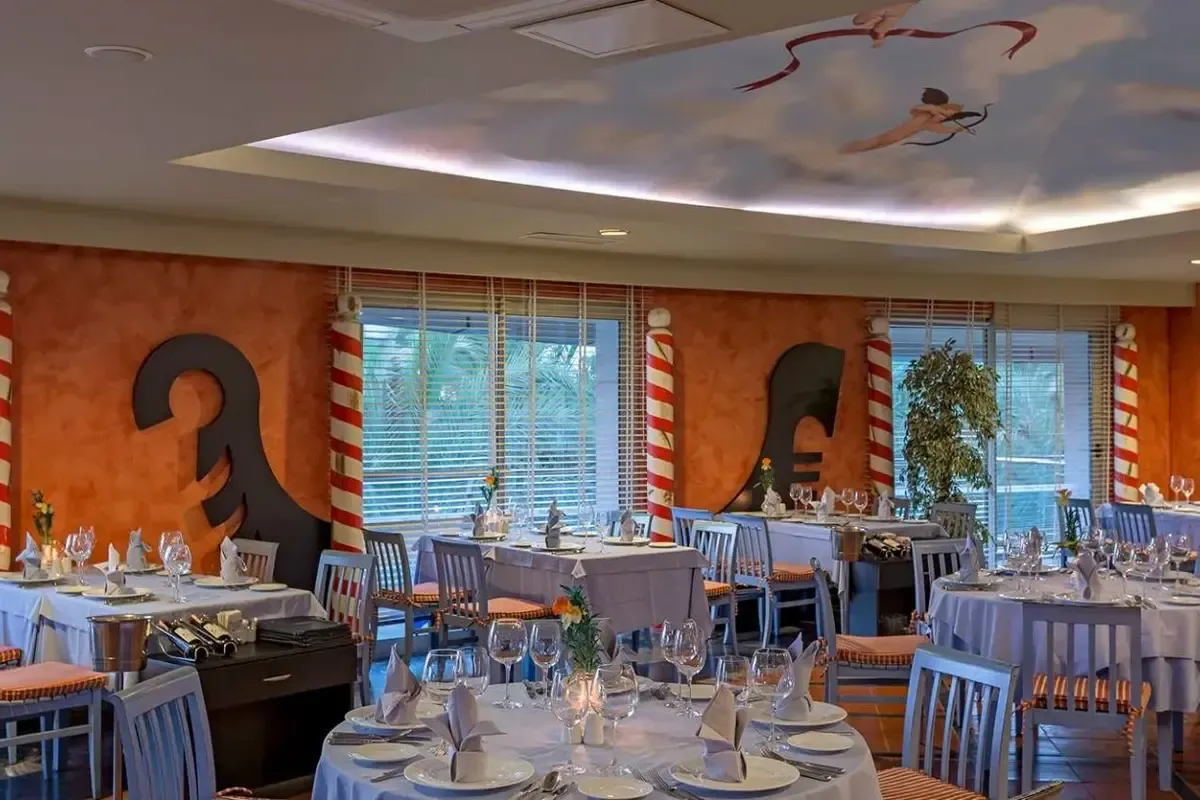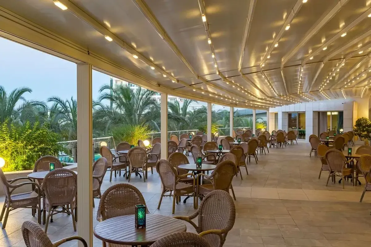 • Maistas ir gėrimai viešbučio restoranuose, kavinėse ir baruose, išvardintuose viešbučio aprašyme, yra tiekiami viešbučio administracijos nustatyta tvarka ir yra mokami priklausomai nuo užsisakyto maitinimo tipo