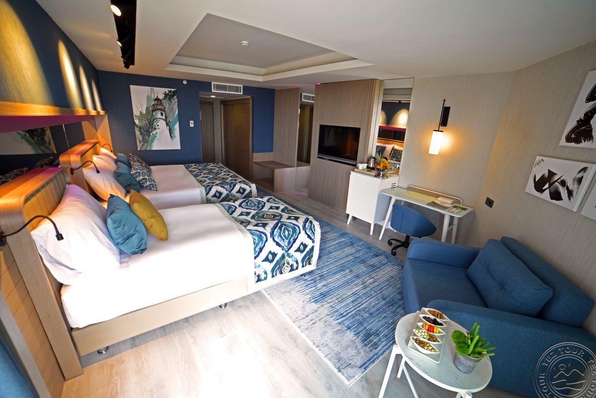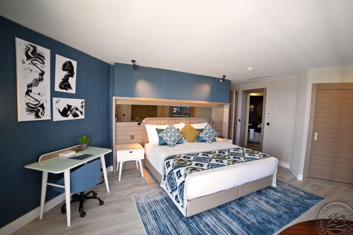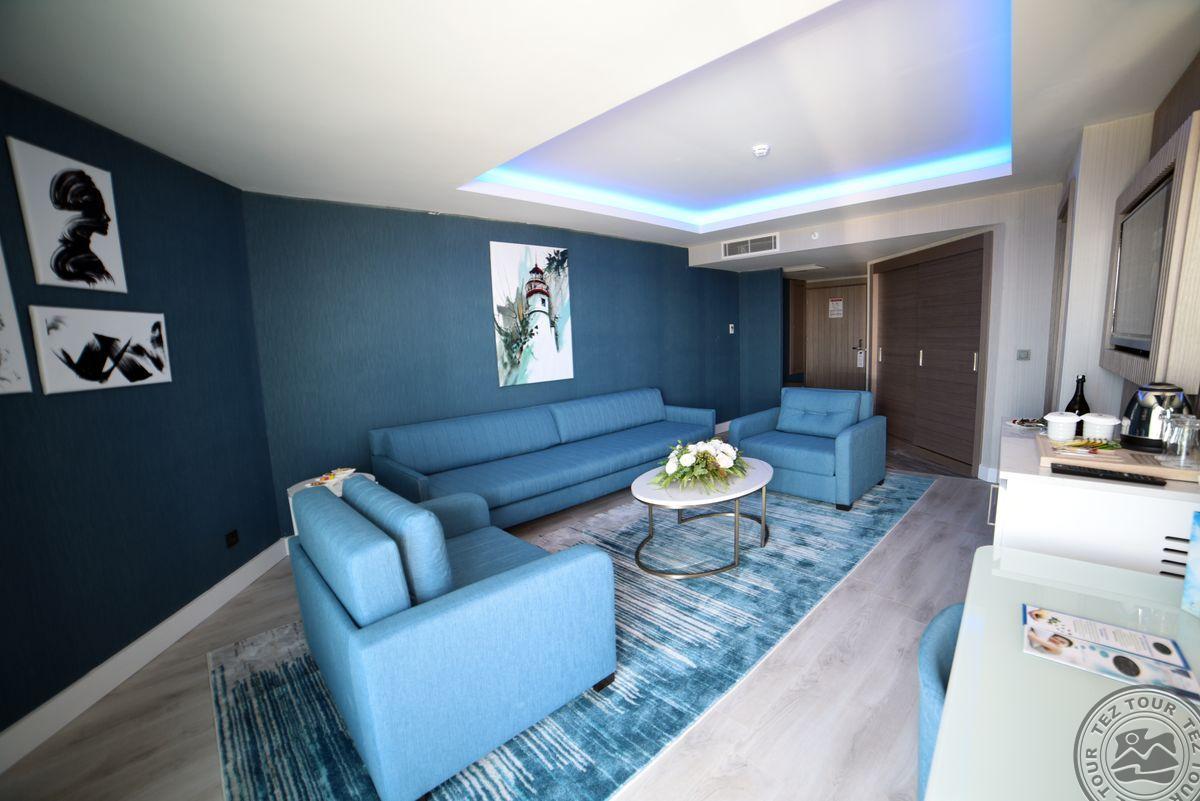 26 Junior Suite Sea View tipo numeriai (su vaizdu į jūrą, svetainė, miegamasis su sūkurine vonia, maks. 3+1 asm.+kūdikis, 70 kv.m).