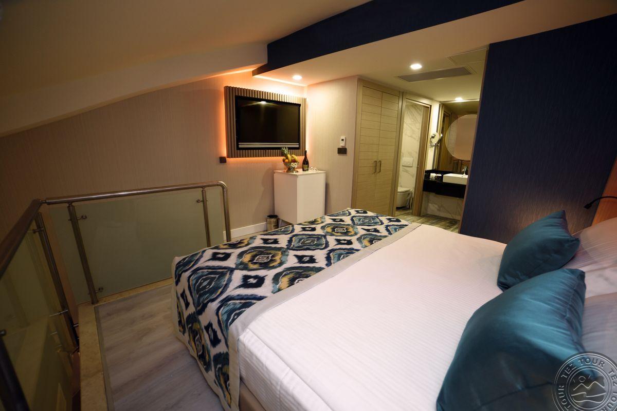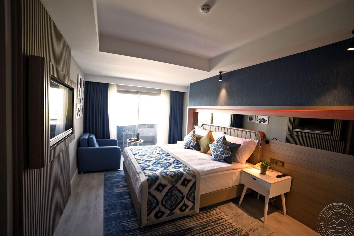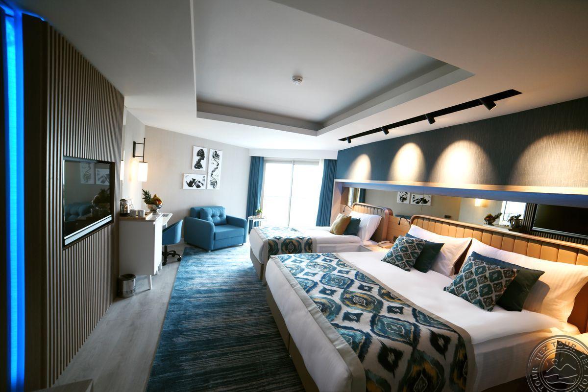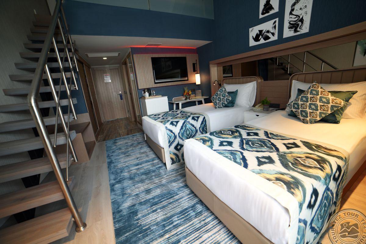 26 Junior Suite Sea View tipo numeriai (su vaizdu į jūrą, svetainė, miegamasis su sūkurine vonia, maks. 3+1 asm.+kūdikis, 70 kv.m).