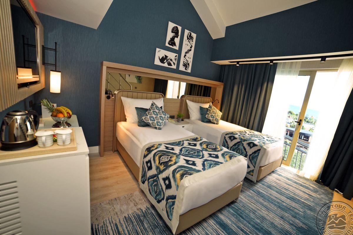 6 Standard Lagoon Suite tipo numeriai (su vaizdu į sodą ir baseiną, miegamasis ir svetainės zona, dvigulė ir 1 viengulė lova, terasa su gultais, tiesioginis išėjimas į baseiną iš terasos, maks. 3+1 asm., privilegijos, 54 kv.m).