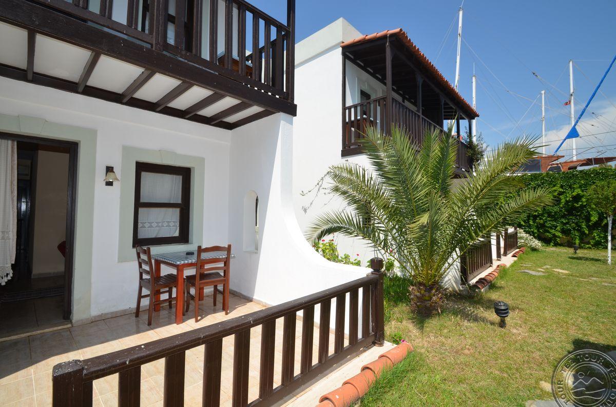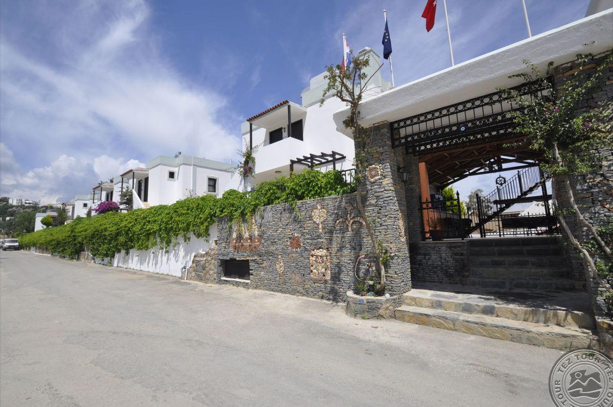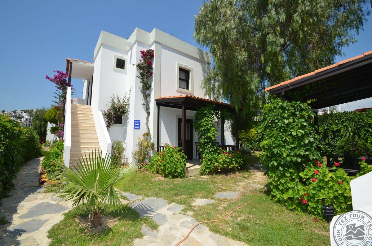 Gumbeto kurorte, apie 4 km iki Bodrumo centro, apie 35 km iki Bodrumo oro uosto, per kelią iki jūros.