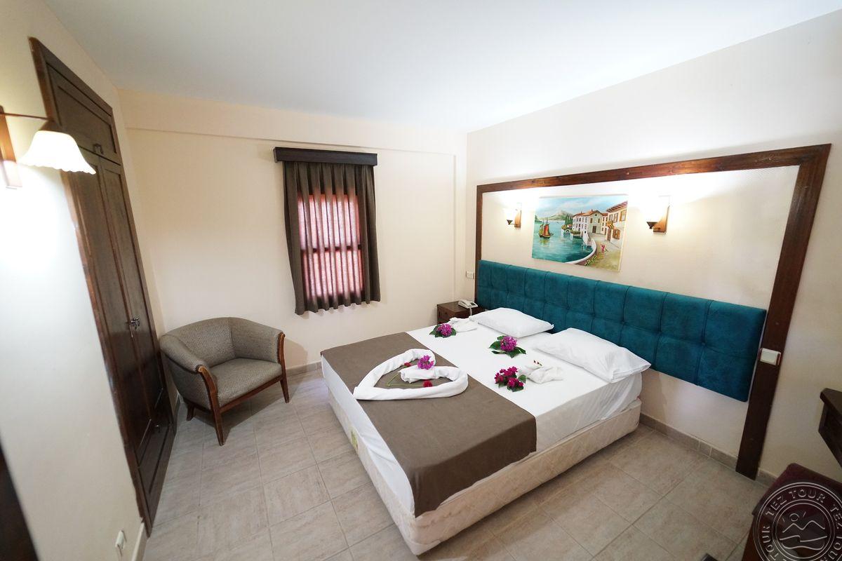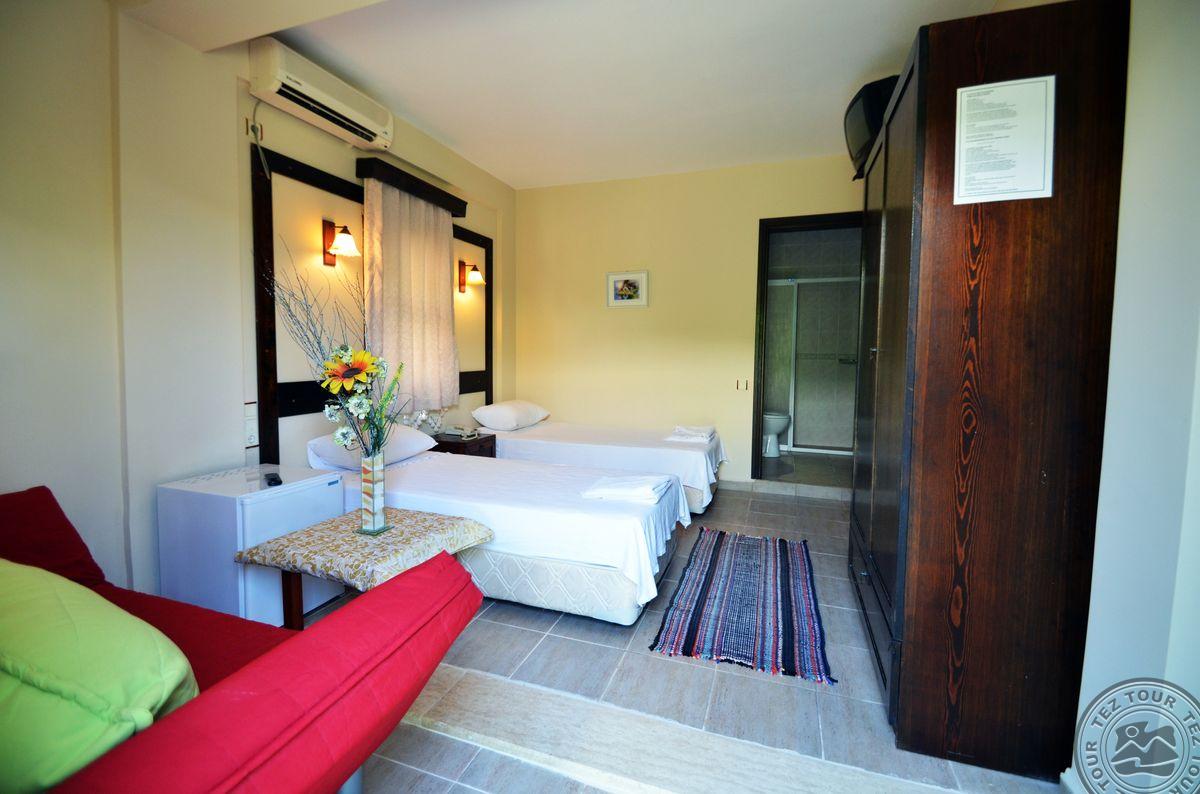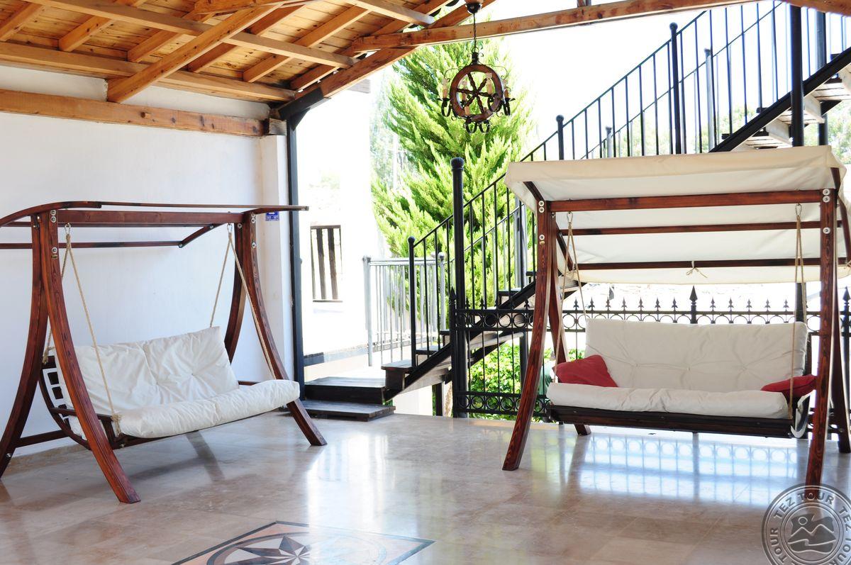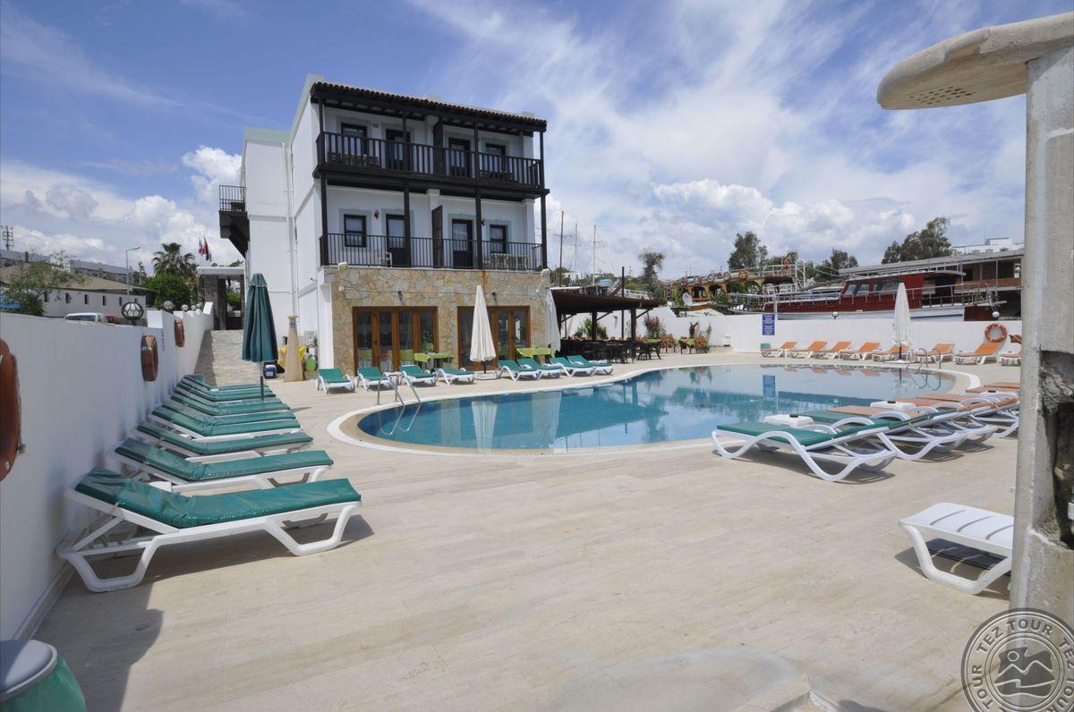 Gumbeto kurorte, apie 4 km iki Bodrumo centro, apie 35 km iki Bodrumo oro uosto, per kelią iki jūros.