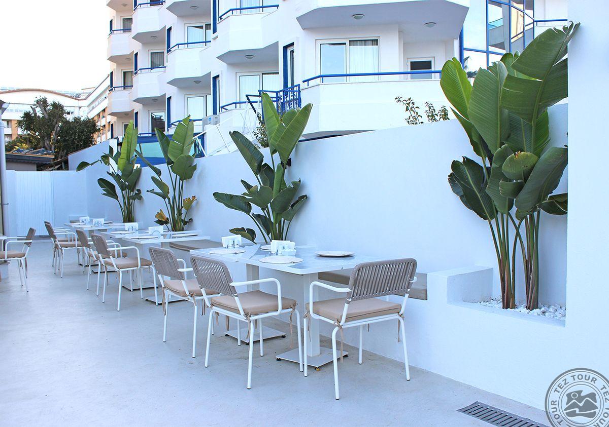 Apie 125 km iki Antalijos miesto oro uosto, apie 500 m iki Alanijos miesto centro, ant jūros kranto.