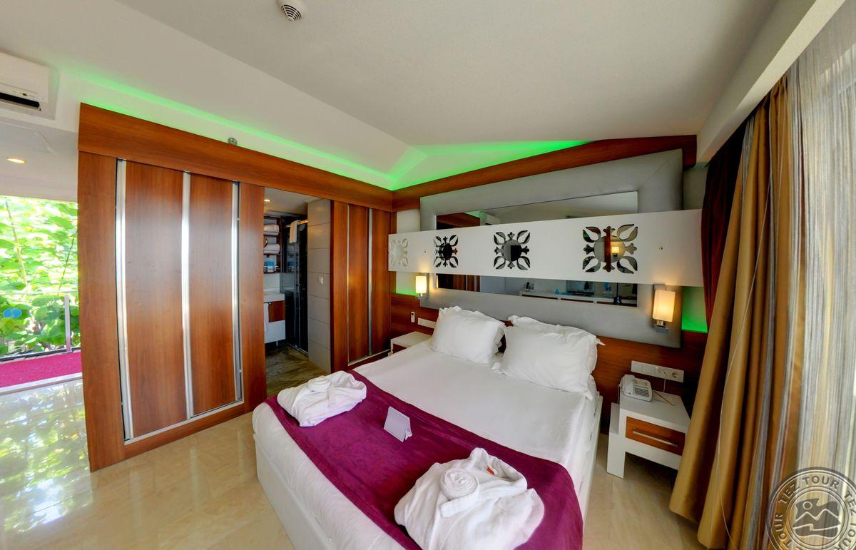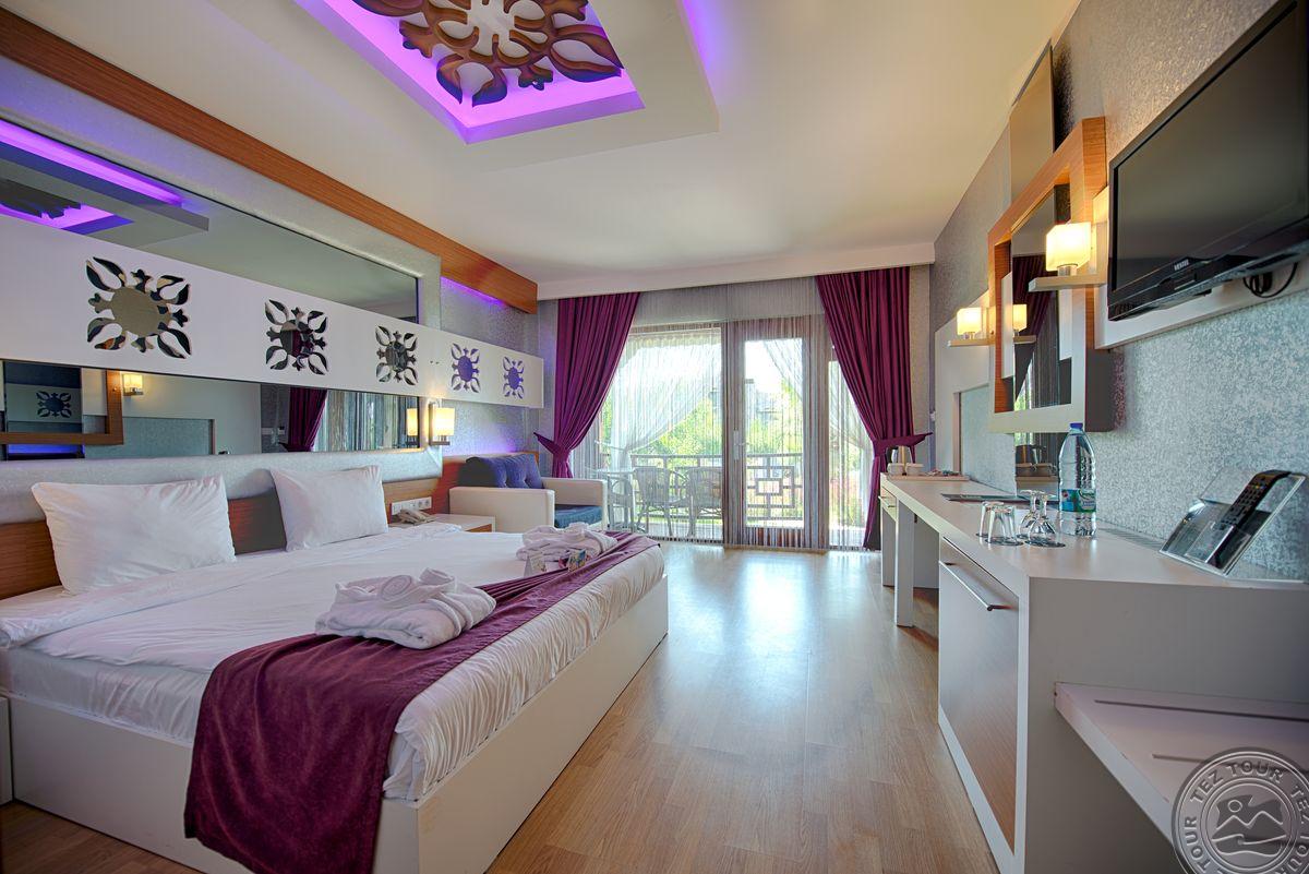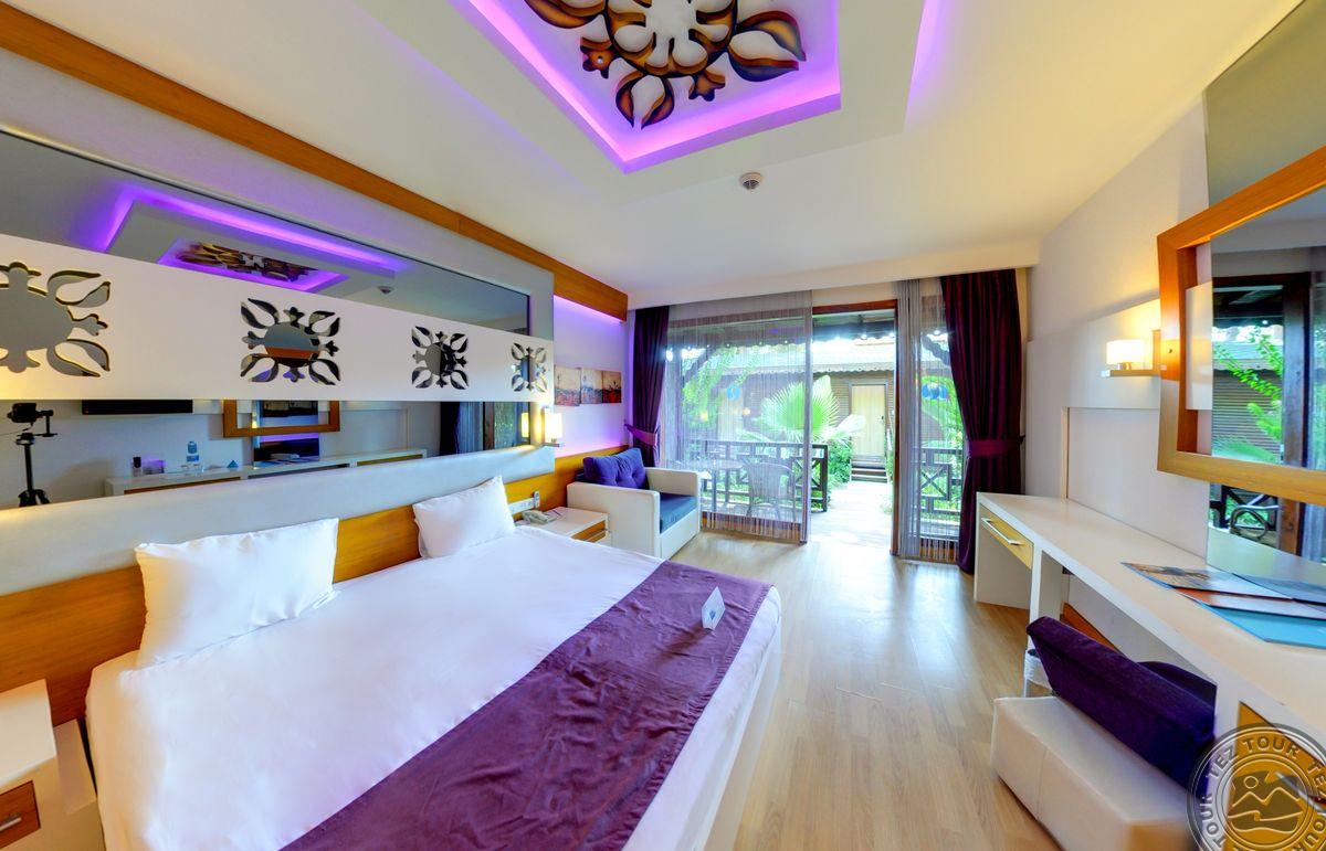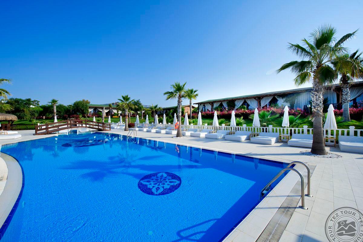 Viešutis atidarytas 2009 m., paskutinį kartą atnaujintas 2015 m. Skirtas tik suaugusiems (+16). Yra 4 a la carte restoranai (už papildomą mokestį), 8 barai, paplūdimys žvyro, akmenuotas - skėčiai, gultai, rankšluosčiai. Lokacija: ~80 km iki Antalijos oro uosto, ~15 km iki Sidės kurorto, Manavgato centras yra už 20 km nuo viešbučio šalia paplūdimio. 224 kambariai, vietinis oro kondicionierius, balkonas/terasa, dušas, plaukų džiovintuvas, seifas, mini baras (už papildomą mokestį), kavos/arbatos rinkinys. Standard Land View tipo numeriai. Standard Limited Sea View tipo numeriai. Kambariai su daliniu vaizdu į jūros pusę. Lotus Sea View tipo numeriai: kambariai su vaizdu į jūros pusę. Viešbučio teritorija erdvi, dominuoja lietuviškos sodybos stilius, pušų apsuptas viešbutis su laukiniu gana ilgu paplūdimiu. Teritorija išilga, turi sodą pasivaikščiojimui. Nors neseniai renovuotas, tačiau kambariai gan susidevėję. Aplinka rami, rekomenduojama ramybės norintiems turistams.