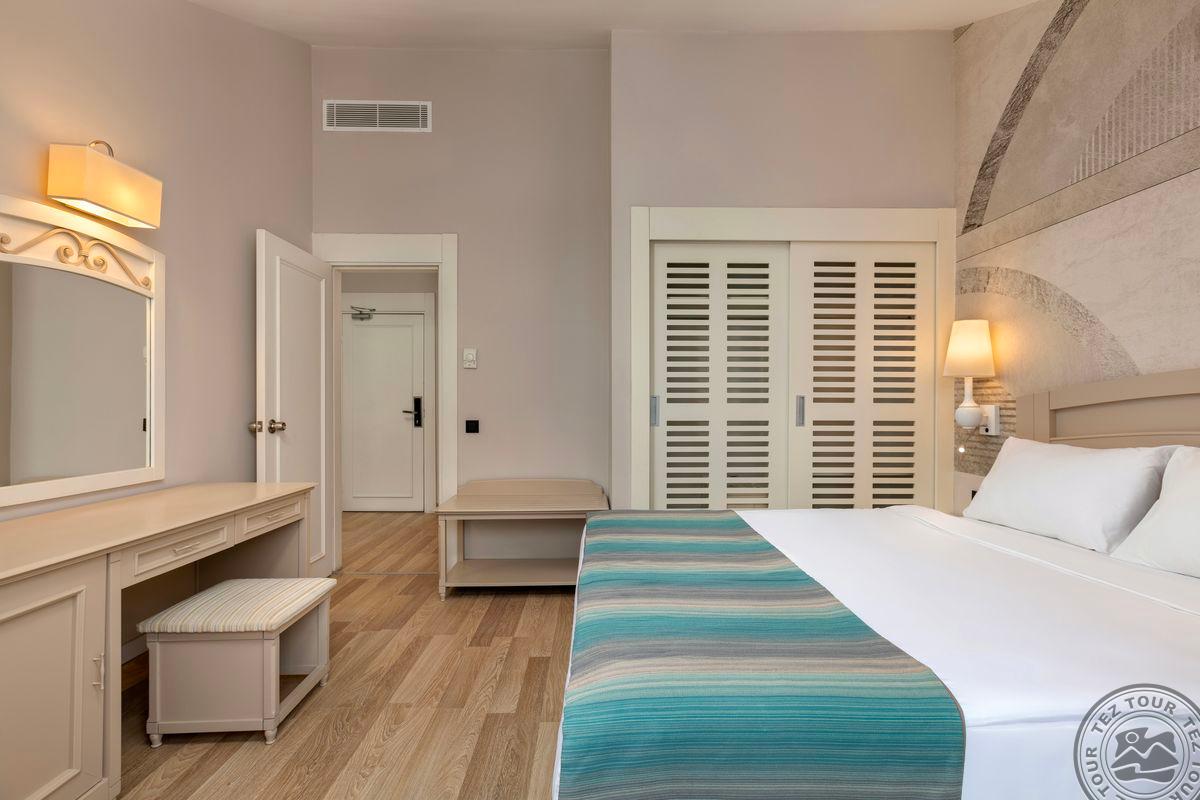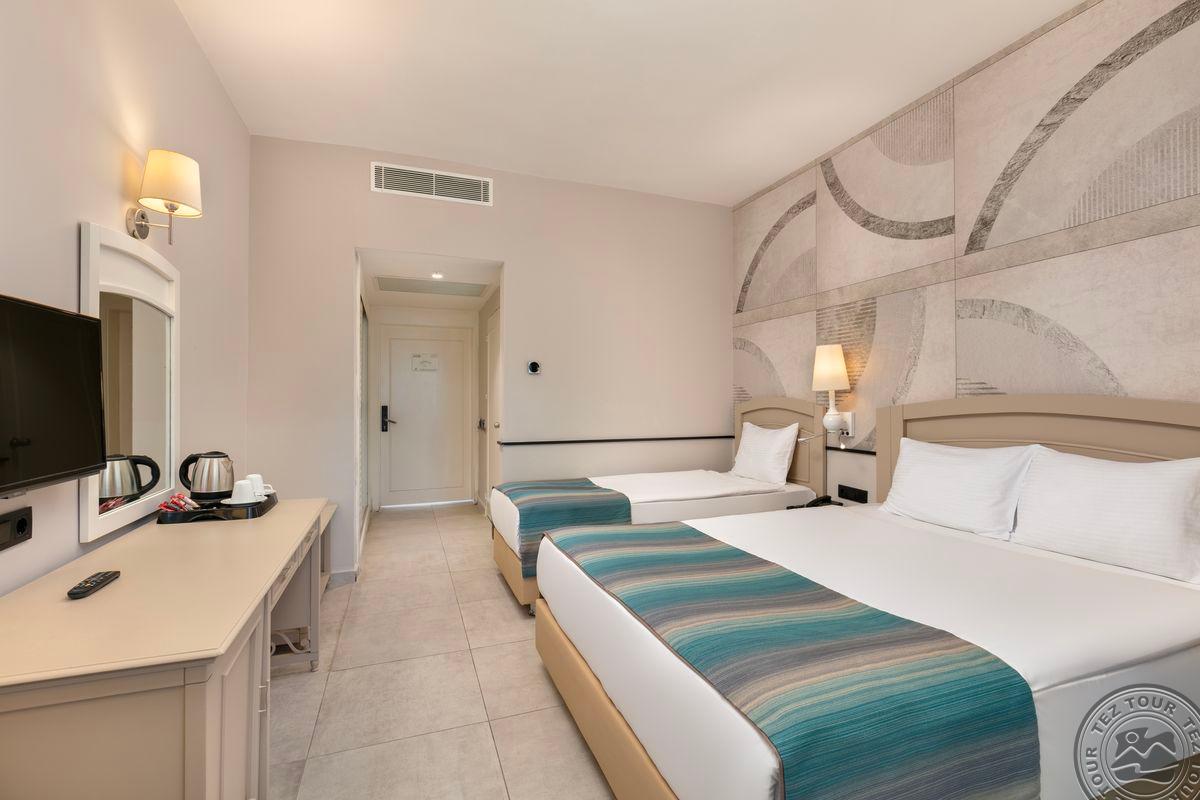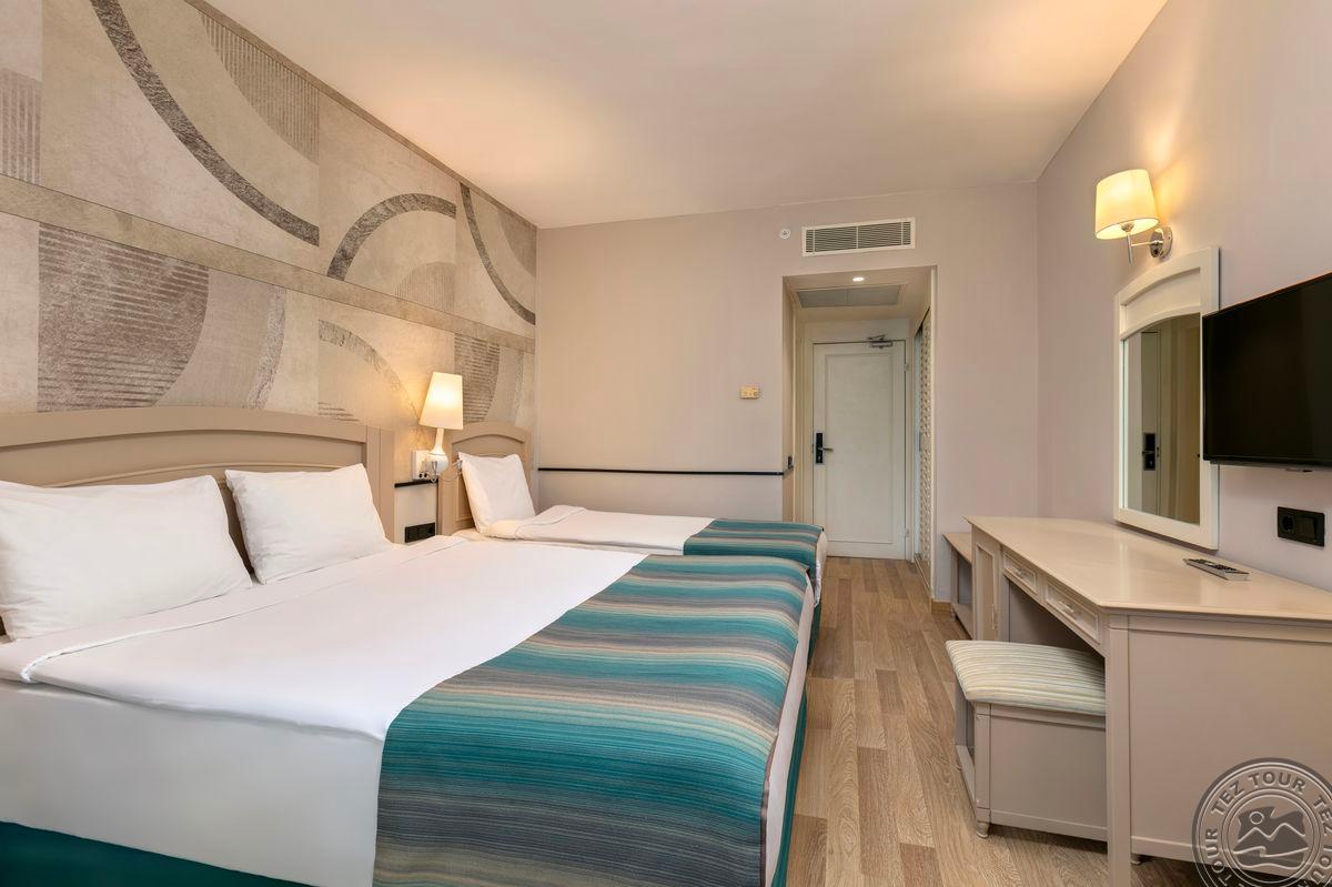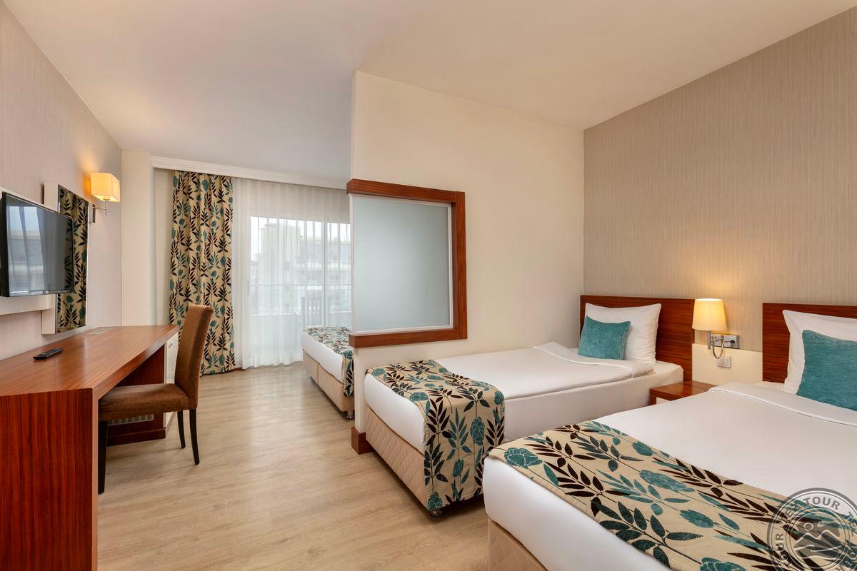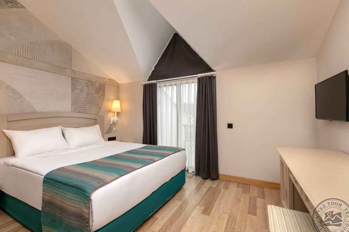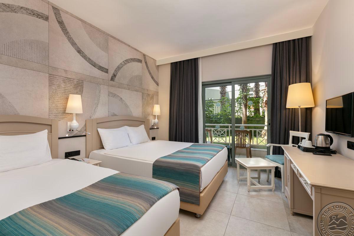 109 standard room bungalow tipo numeriai (dvigulė ir viengulė lovos, vonios kambarys su dušu, balkonas, maks. 3+1 asm., 21 m2).
