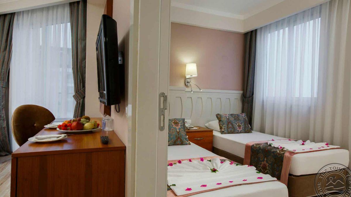 52 family room deluxe pool view tipo numeriai (2 miegamieji atskirti durimis, maks. 4+1 asm., 44 m2).